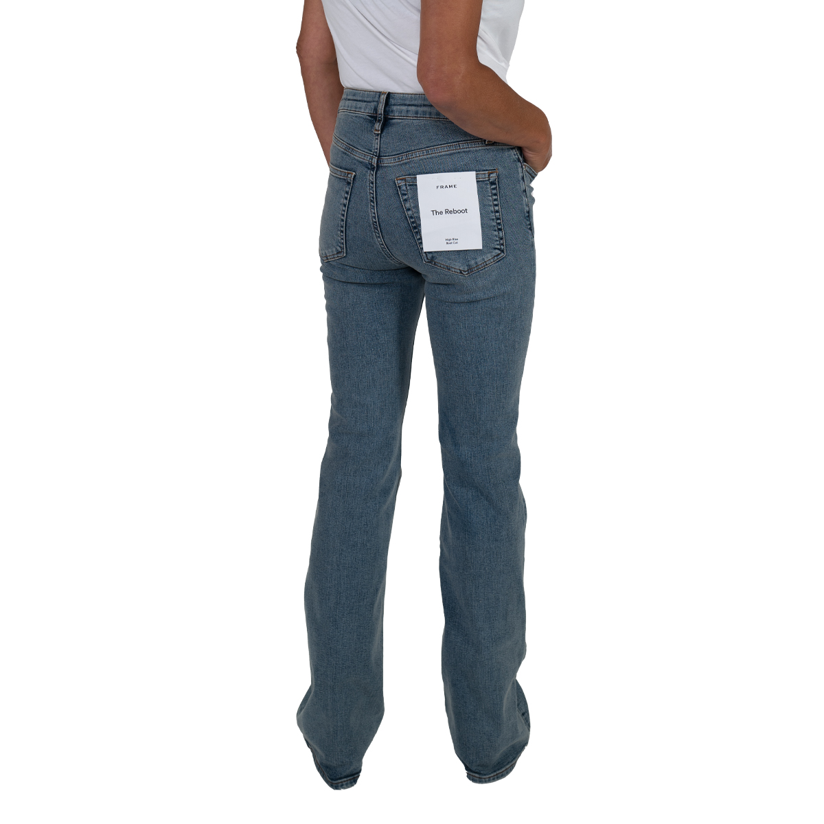 Dames jeans van het merk Frame. De Reboot is uitgevoerd in blauwe denim.