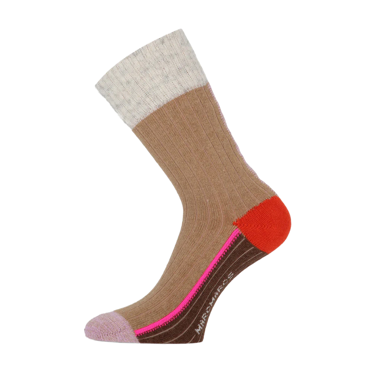 Dames sokken van het merk Marcmarcs. De camelkleurige sokken zijn verkrijgbaar in de maten 5/8 = 35/38 em 9/2 =39/42