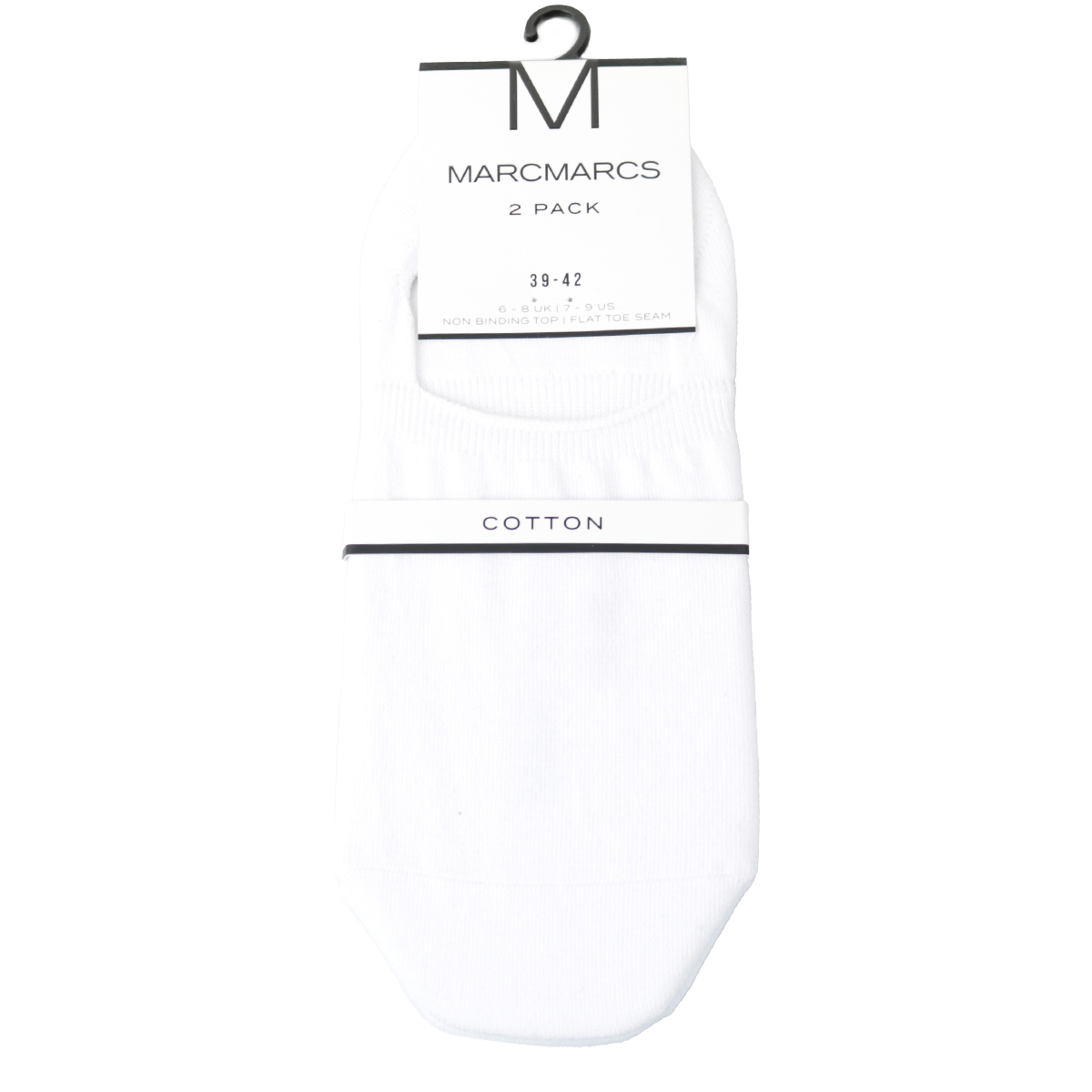 Heren sokken van het merk Marcmarcs. De witte voetjes zijn verkrijgbaar in de maten 9/2= 39/42 en 3/6 = 43/46