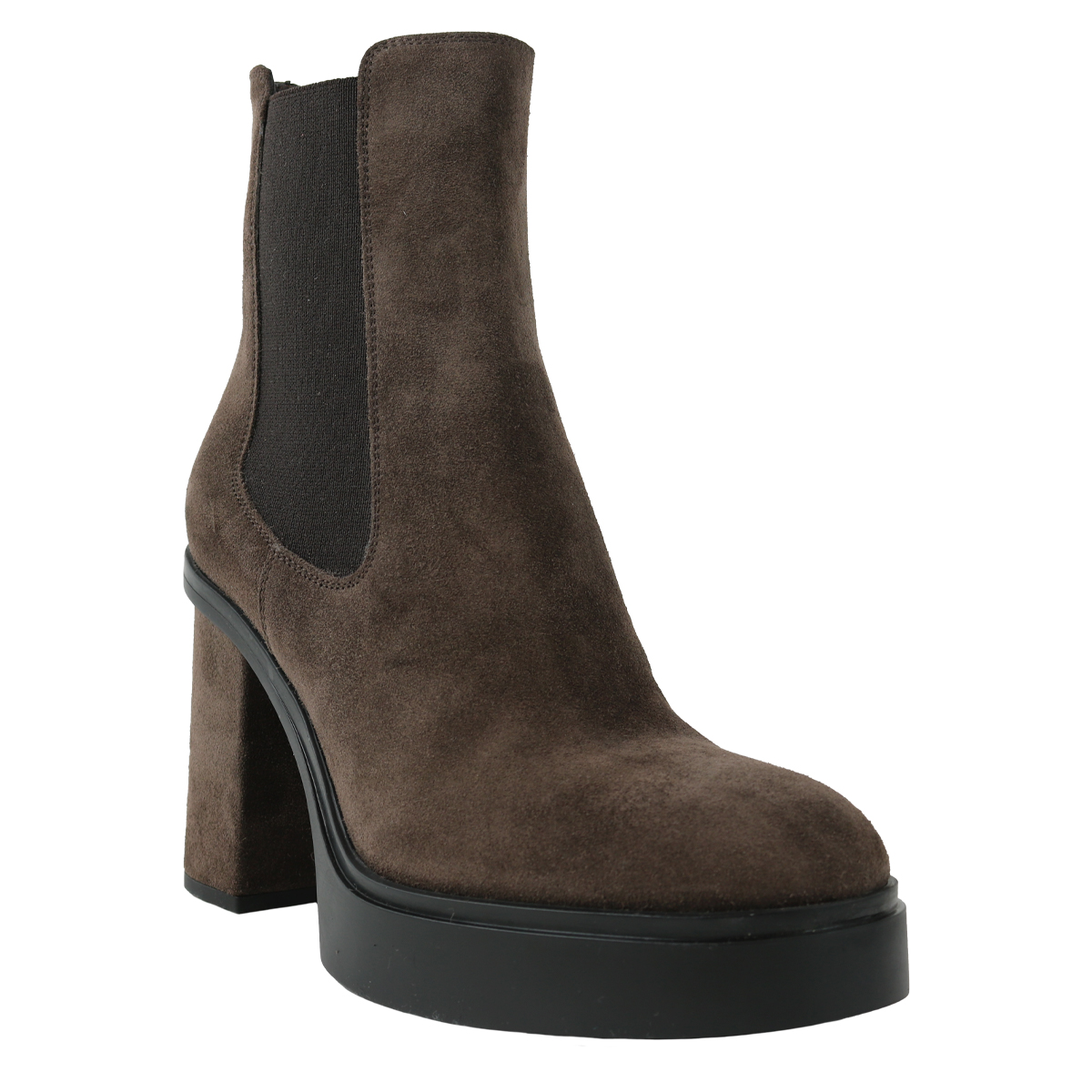Dames enkellaars van het Italiaanse merk Santoni. De enkellaars is uitgevoerd in bruin suede. Santoni is een exclusief merk wat synoniem staat voor luxe, design en handgemaakt vakmanschap. Het binnenwerk is volledig met leer gevoerd, het elastiek helpt om het aan- en uittrekken te versoepelen. De loopzool is van rubber en de hakhoogte meet 7,5cm. Maatadvies: bestel een halve maat kleiner.