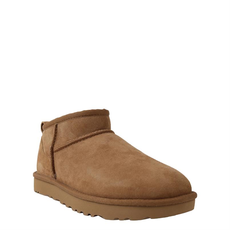 Dames enkellaars van het merk UGG. De classic ultra mini is uitgevoerd in cognac suede. De binnenzijde is van wol en de loopzool is van rubber. Maatadvies: bestel uw eigen maat. Onderhoudsproduct ter waarde van €17,95 cadeau.