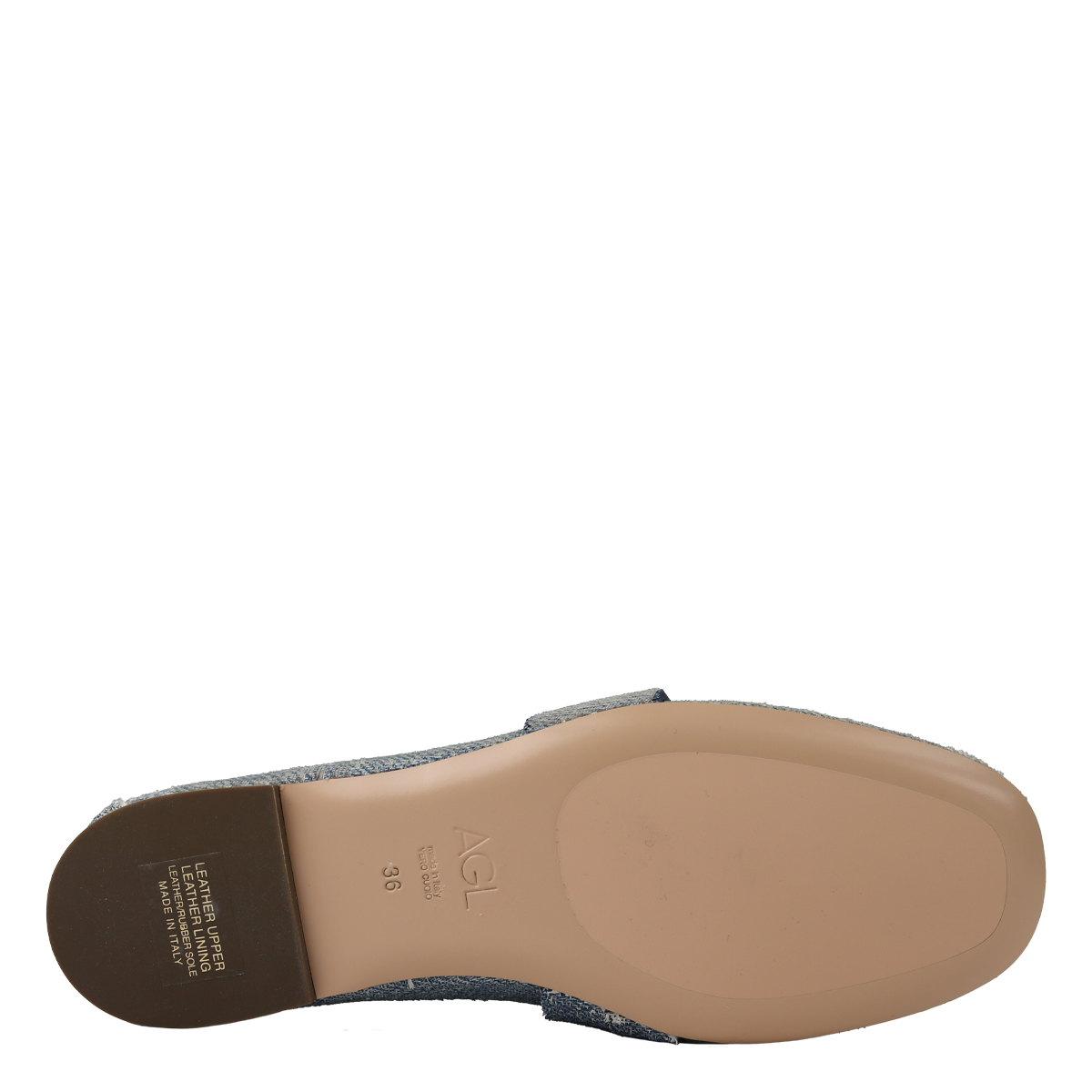 Dames instapper van het merk AGL. De instapper is uitgevoerd in blauwe stof en leer. Zowel de binnenvoering als het voetbed zijn van leer. Verder heeft de instapper een leren zool met rubber inzet. Maatadvies: bestel uw eigen maat.