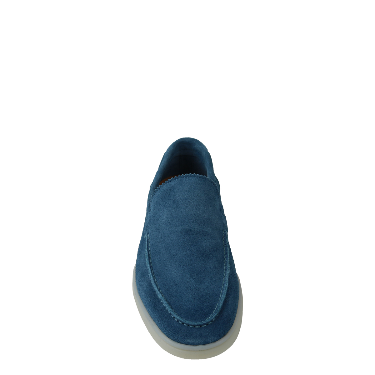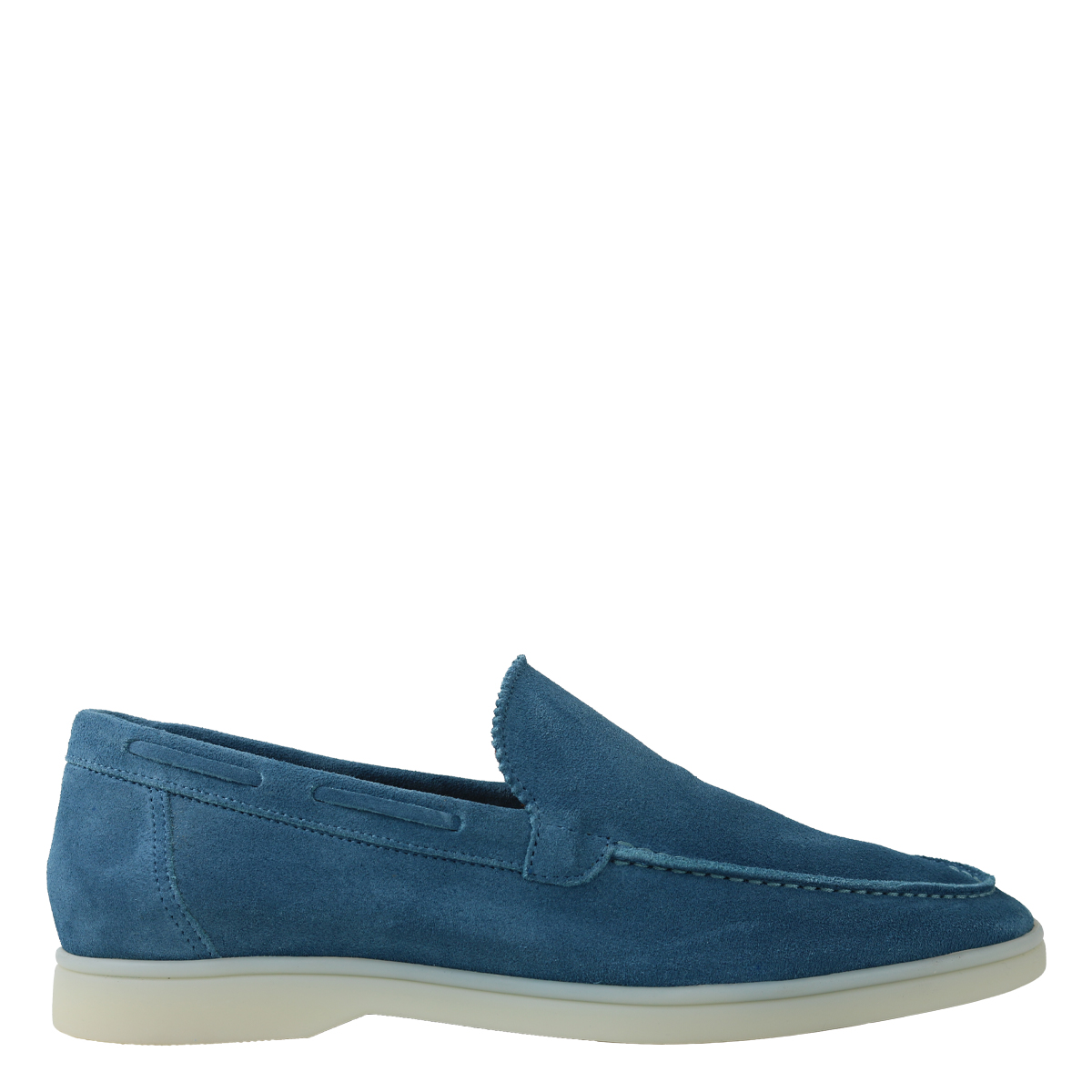 Heren instapper van het merk Aurelien. De instapper is uitgevoerd in blauw suède. De binnenkant is ongevoerd en de loopzool is van rubber. Maatadvies: bestel uw eigen maat.