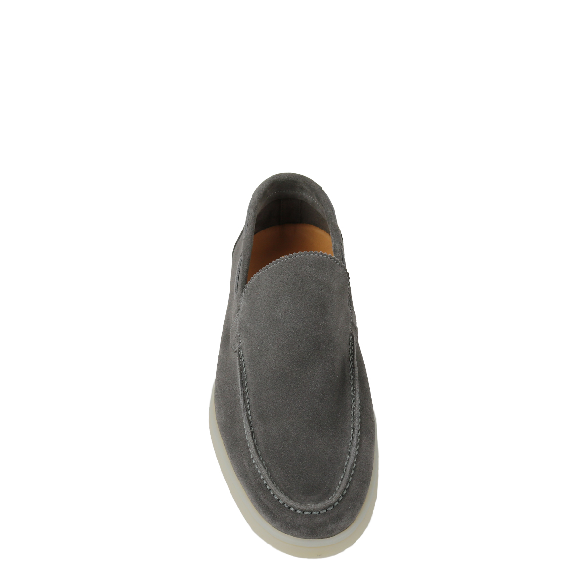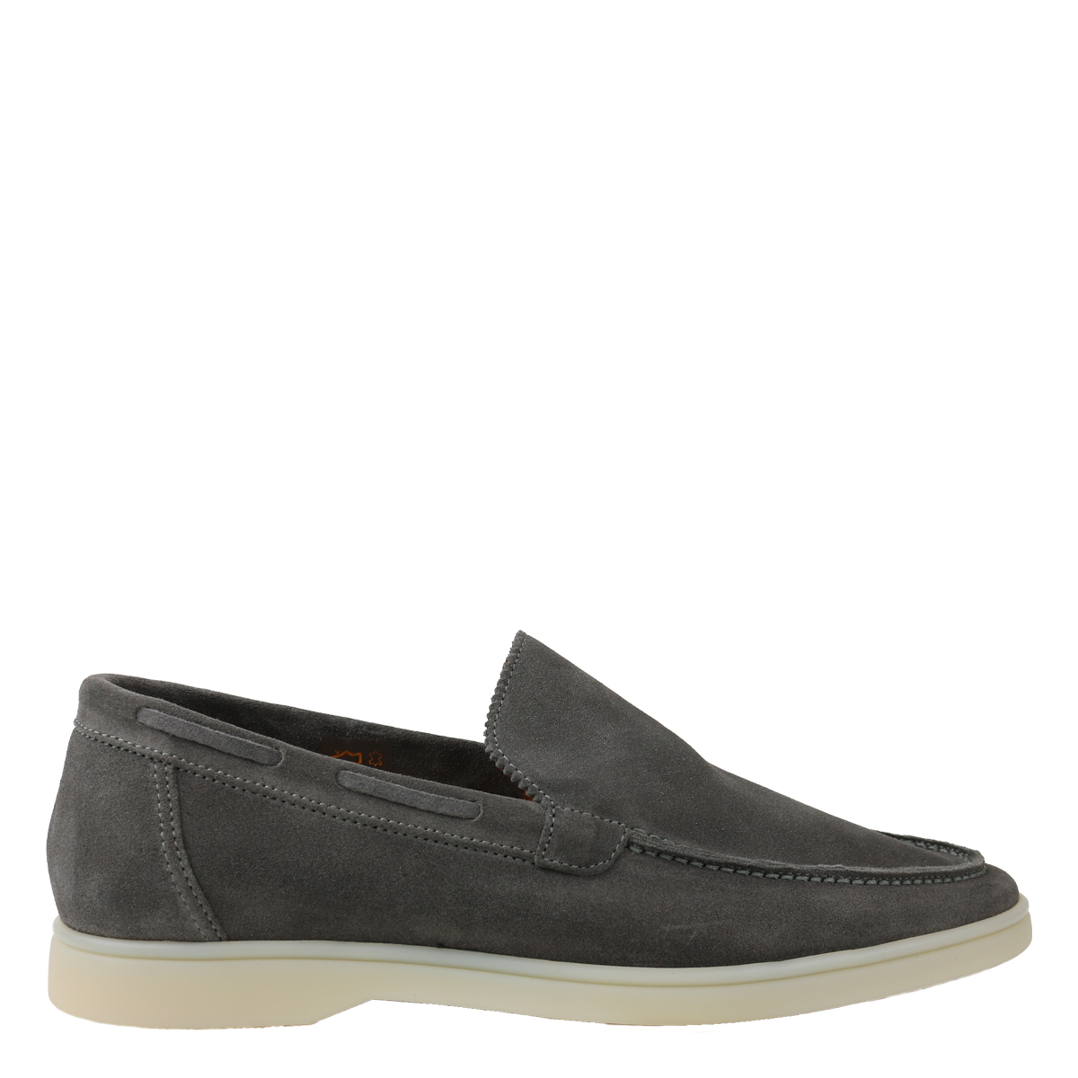 Heren instapper van het merk Aurelien. De instapper is uitgevoerd in het grijs gewassen suède. De binnenkant is ongevoerd en de loopzool is van rubber. Maatadvies: bestel uw eigen maat.