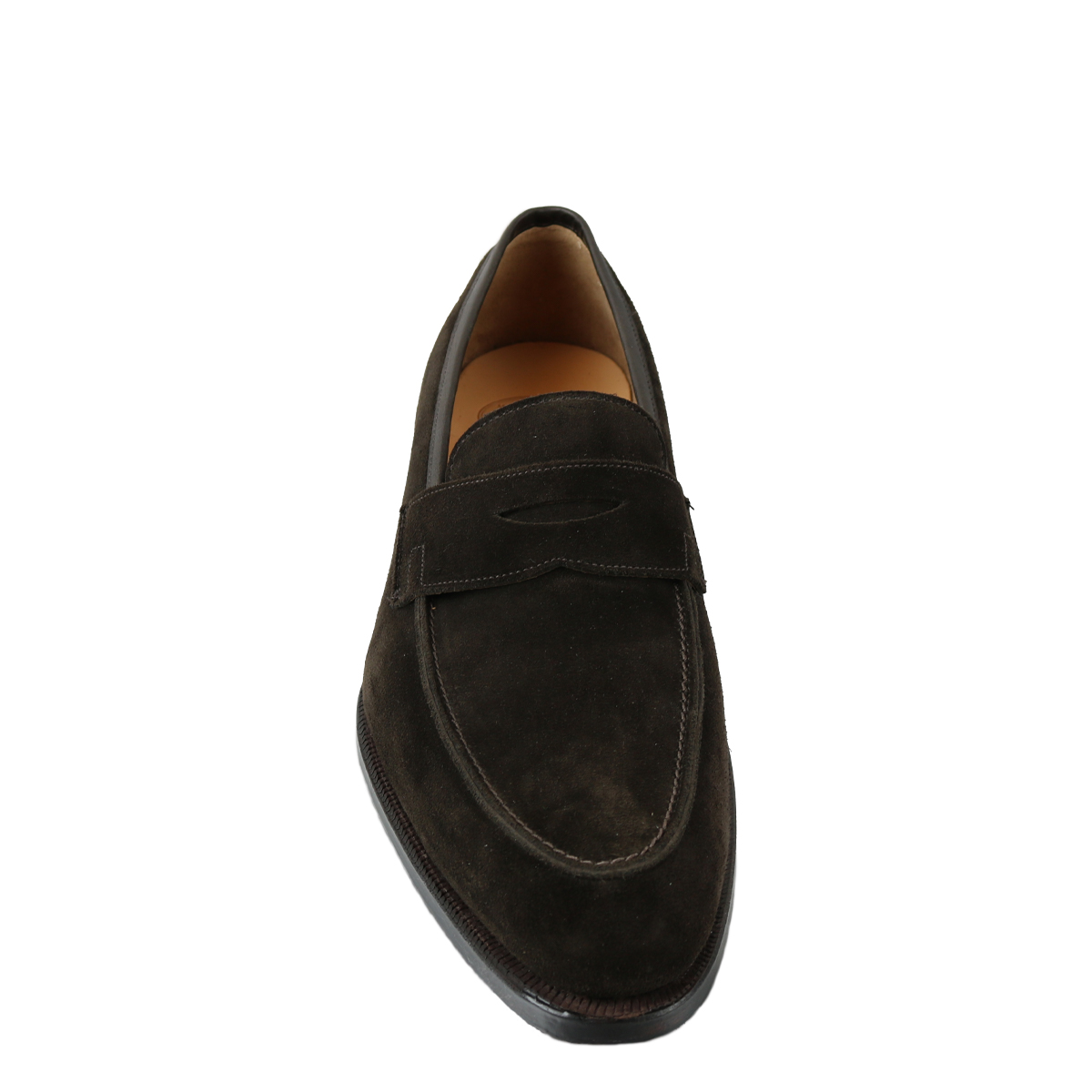 Heren instapper van het merk Crockett & Jones. Deze instapper is uitgevoerd in donkerbruin suède. Deze instapper is volledig met leer gevoerd, de loopzool is van leer met een rubberen inzet. Maatadvies: bestel uw eigen maat.