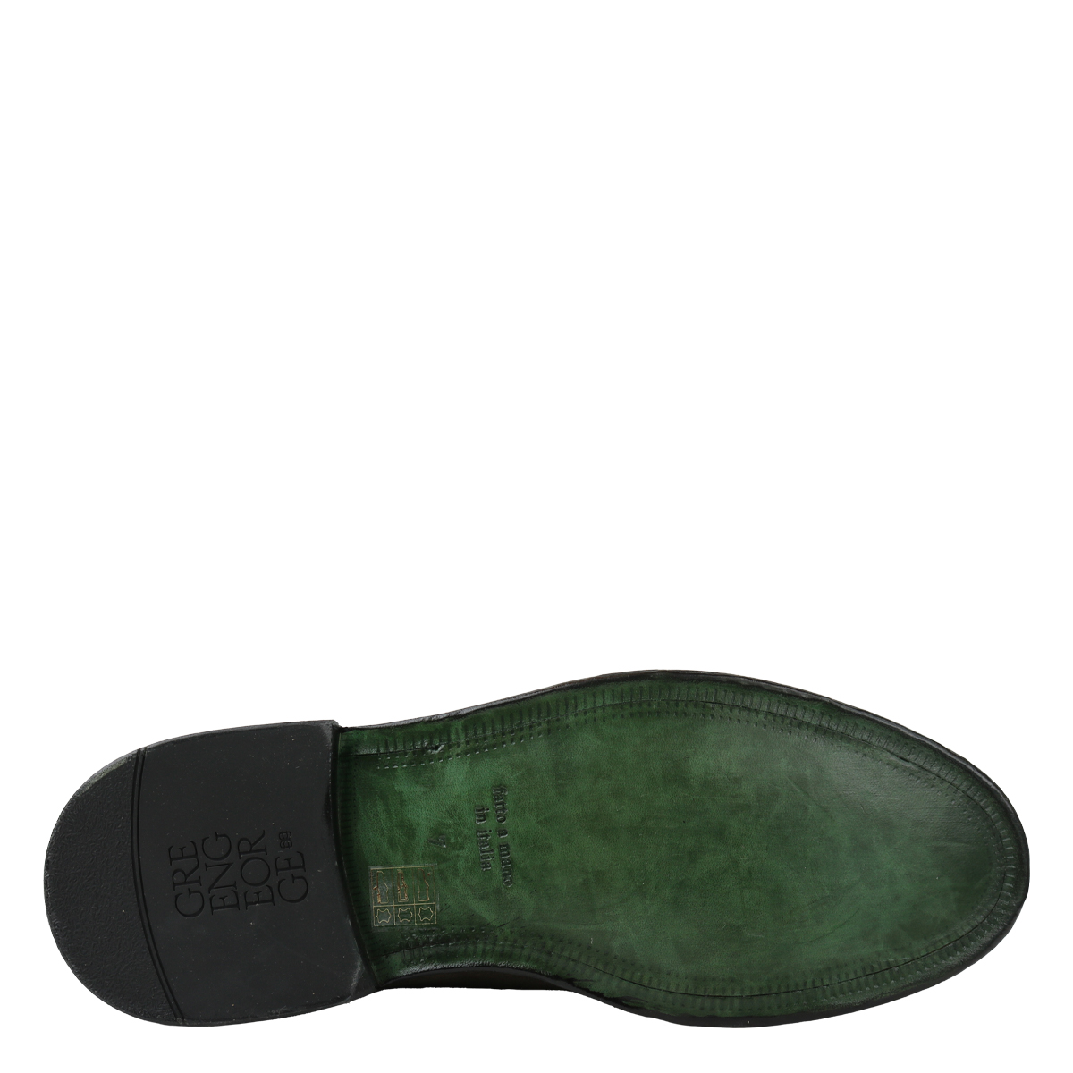 Heren instapper van het merk Green George. De instapper is uitgevoerd in khaky suede. De instapper is aan de binnenkant uitgevoerd in leer en de loopzool is van leer en rubber. Maatadvies: bestel uw eigen maat.
