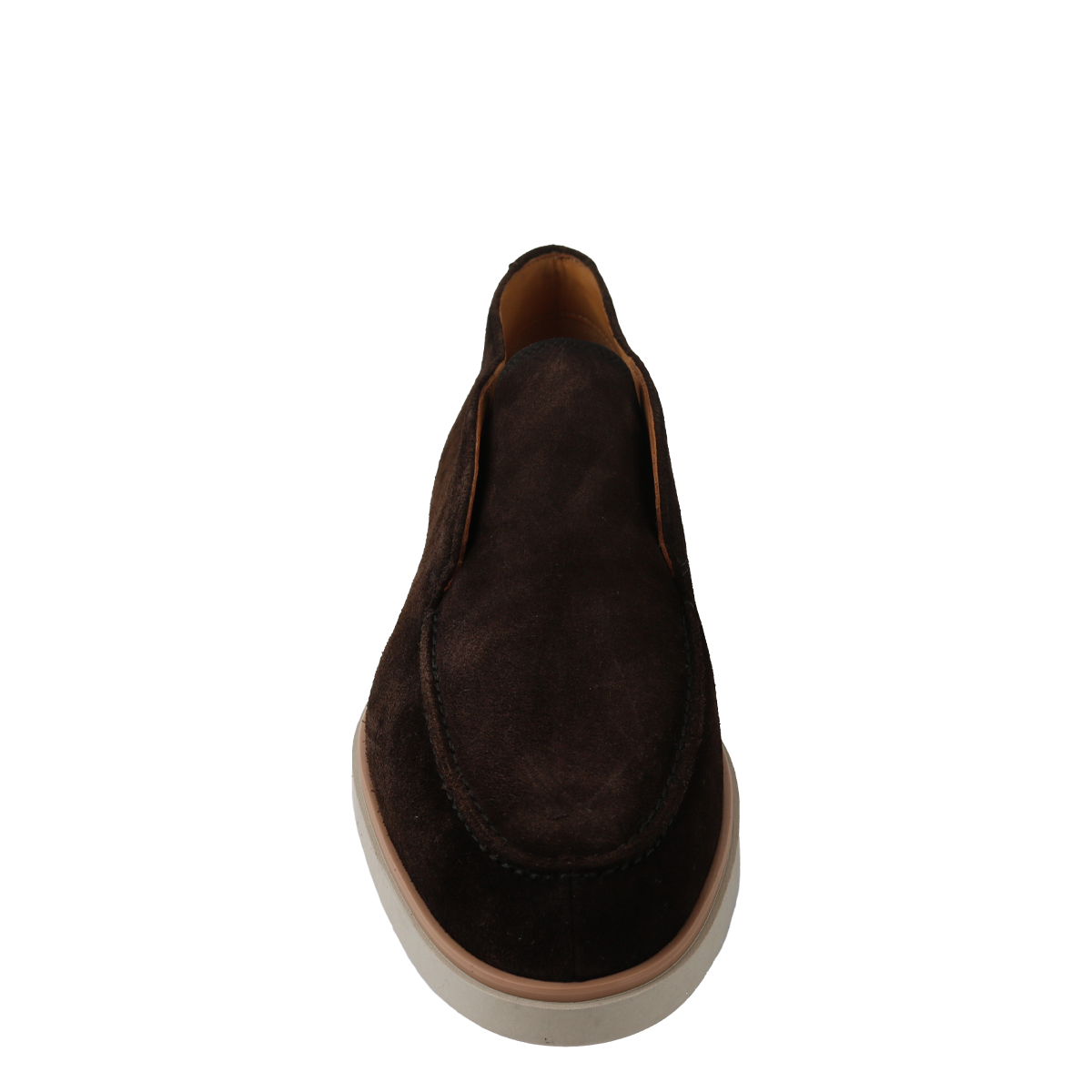 Heren instappers van het merk Magnanni. De instapper is uitgevoerd in donkerbruin suède. Magnanni gebruikt enkel leer van de hoogste kwaliteit voor hun handgemaakte schoenen. Het binnenwerk is volledig met leer gevoerd en de loopzool is van rubber. Maatadvies: bestel een halve maat kleiner.