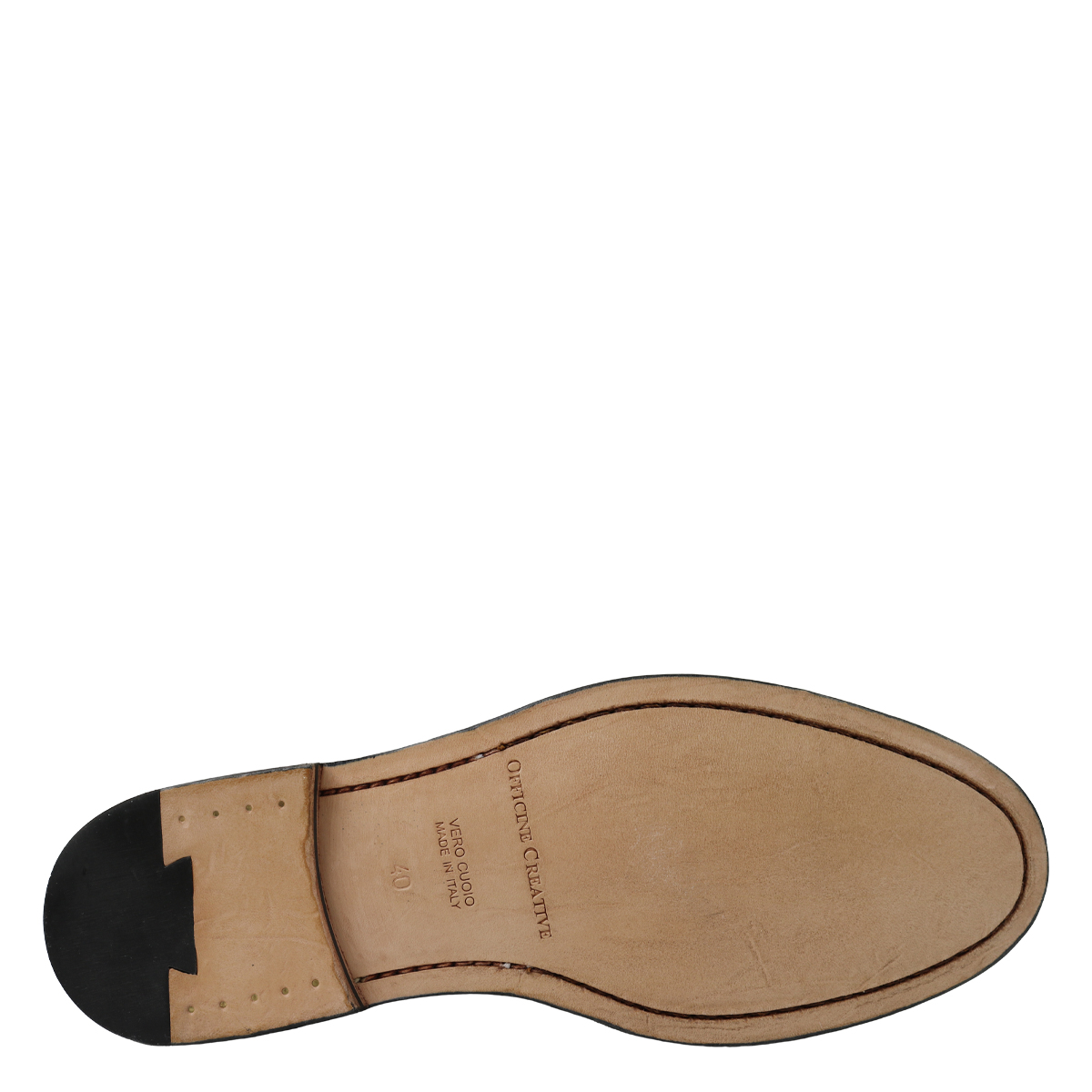 Heren instapper van het Italiaanse merk Officine Creative. De schoen is uitgevoerd in zwart suede. De binnenzijde is geheel uitgevoerd in leer en de loopzool is van leer. Maatadvies: Bestel een halve maat kleiner.