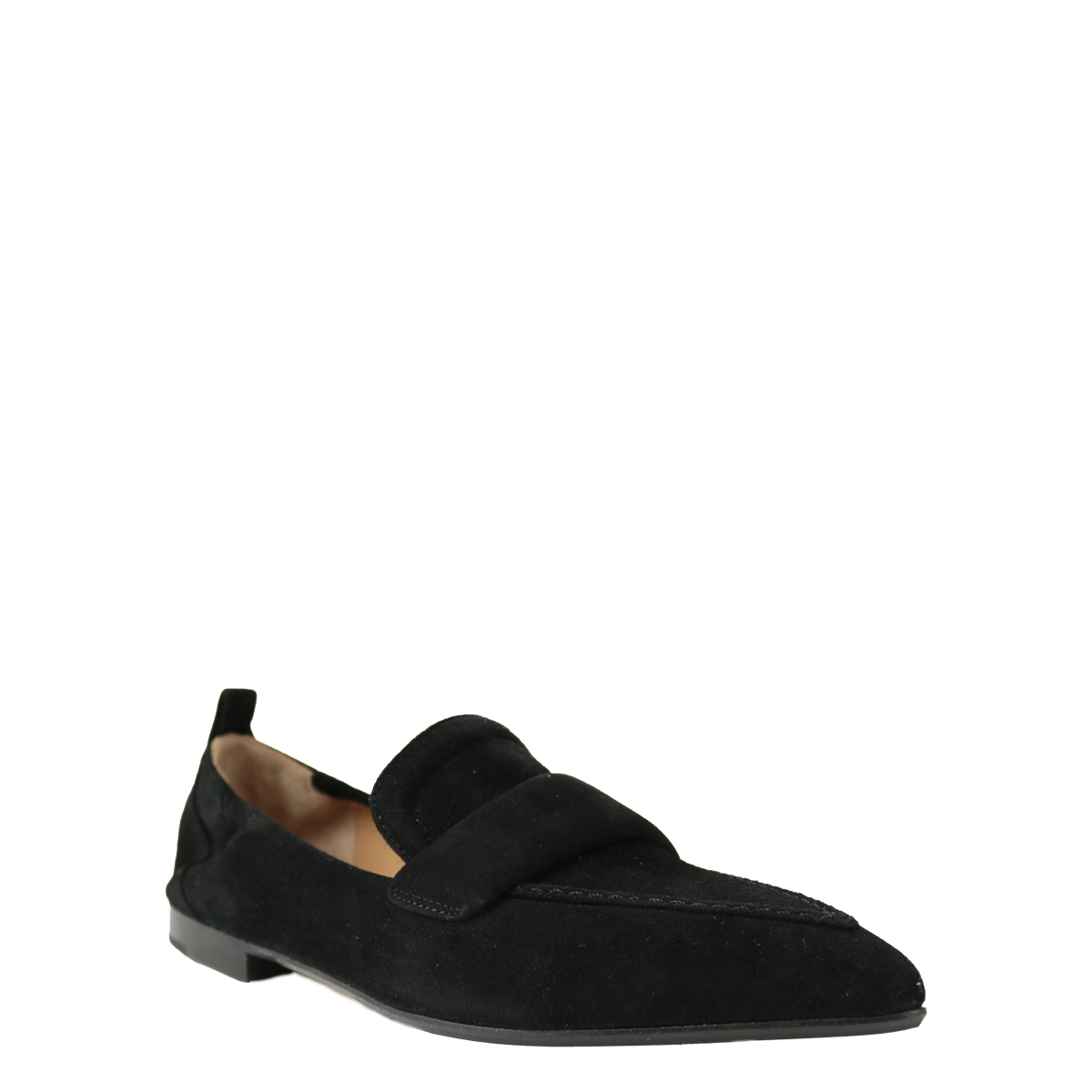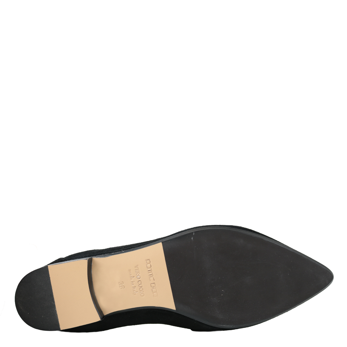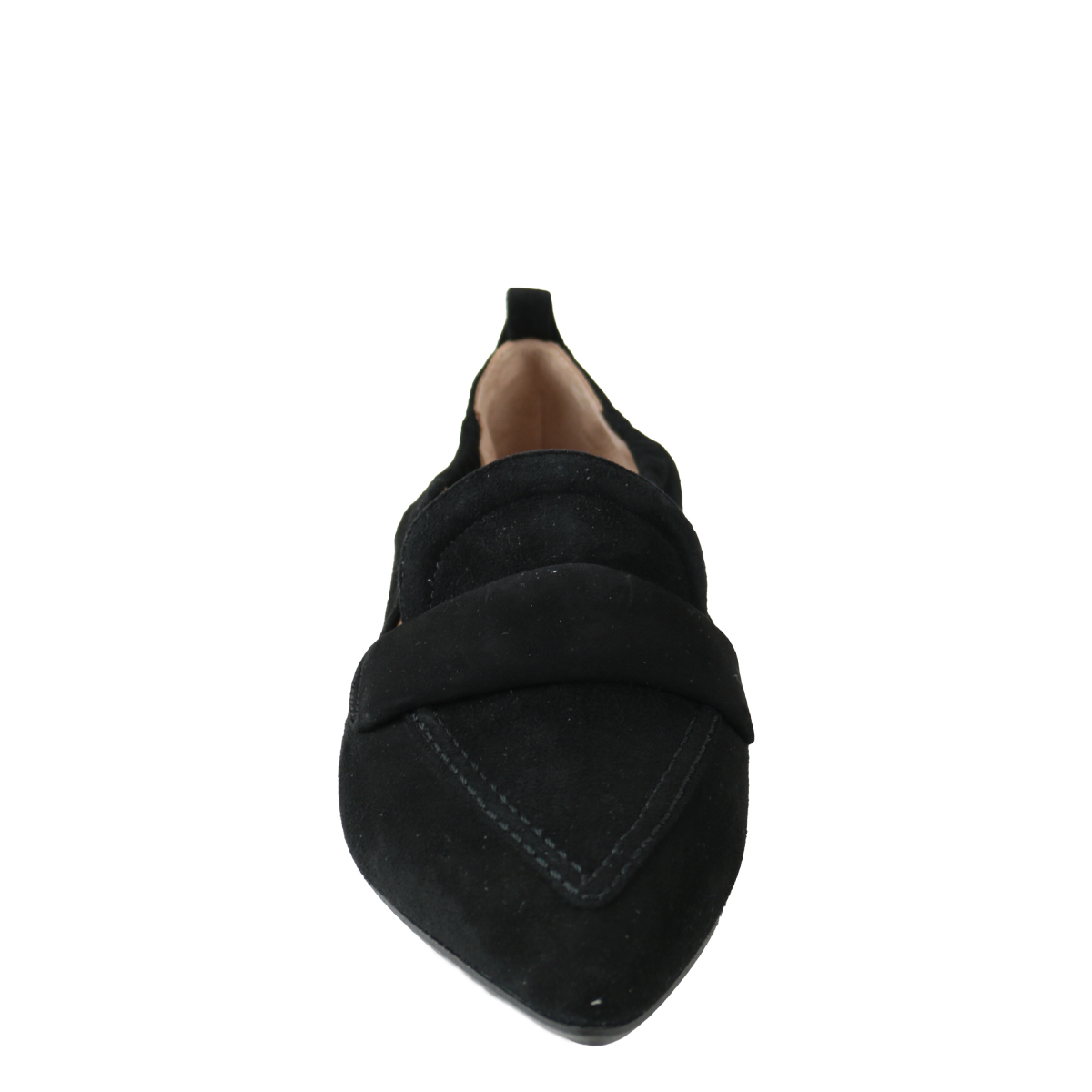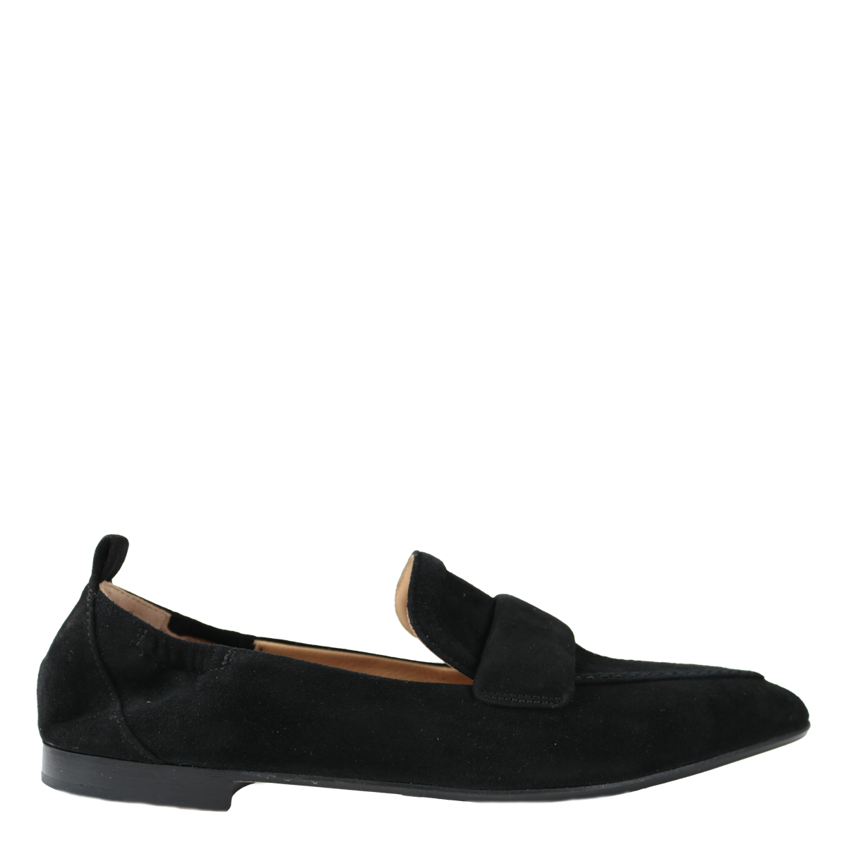 Dames instapper van het merk Pomme D'or. De instapper is uitgevoerd in zwart suede. De binnenzijde en de zool is uitgevoerd in leer met een rubberen inzet. Maatadvies: bestel uw eigen maat.