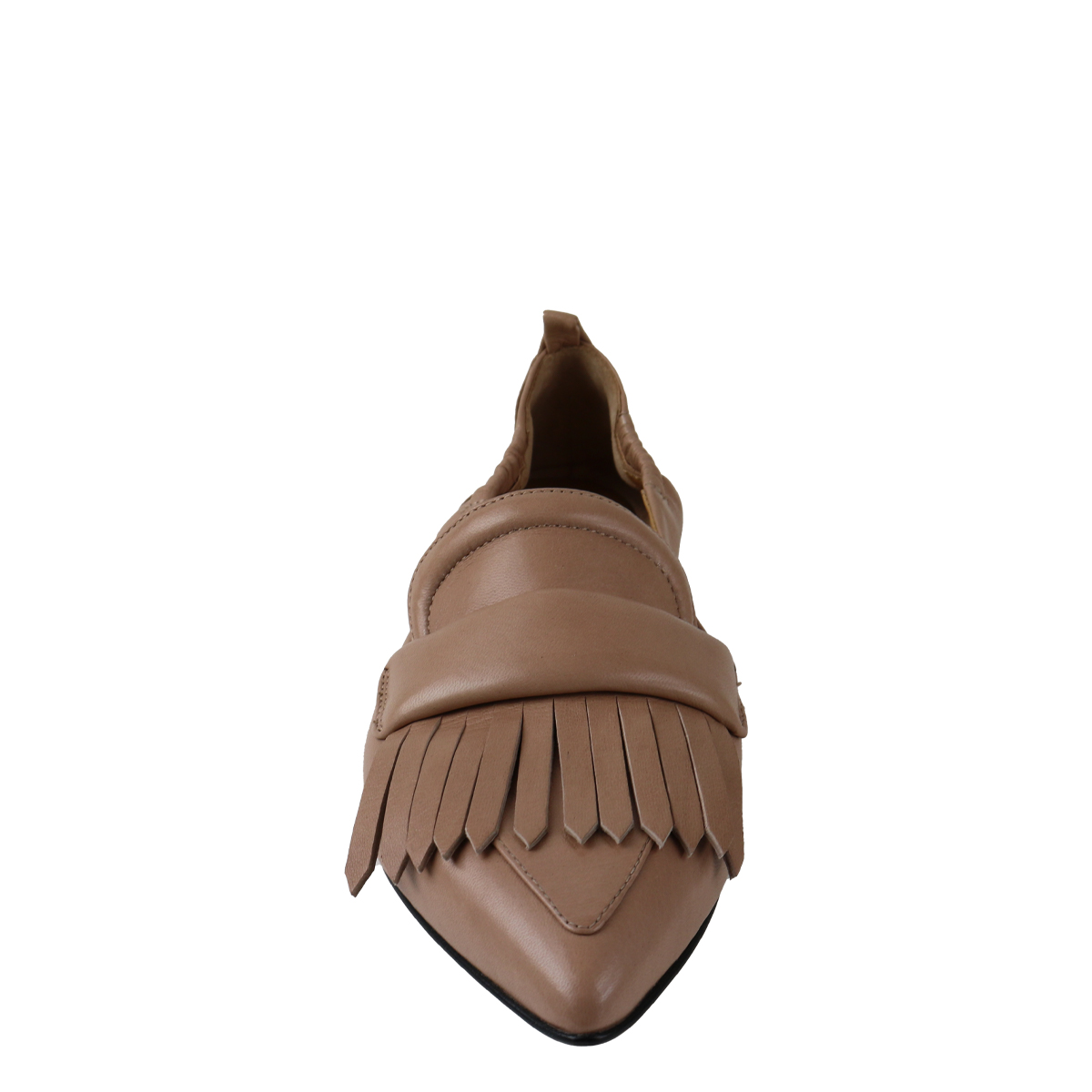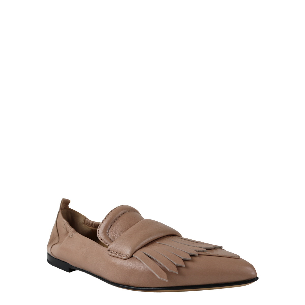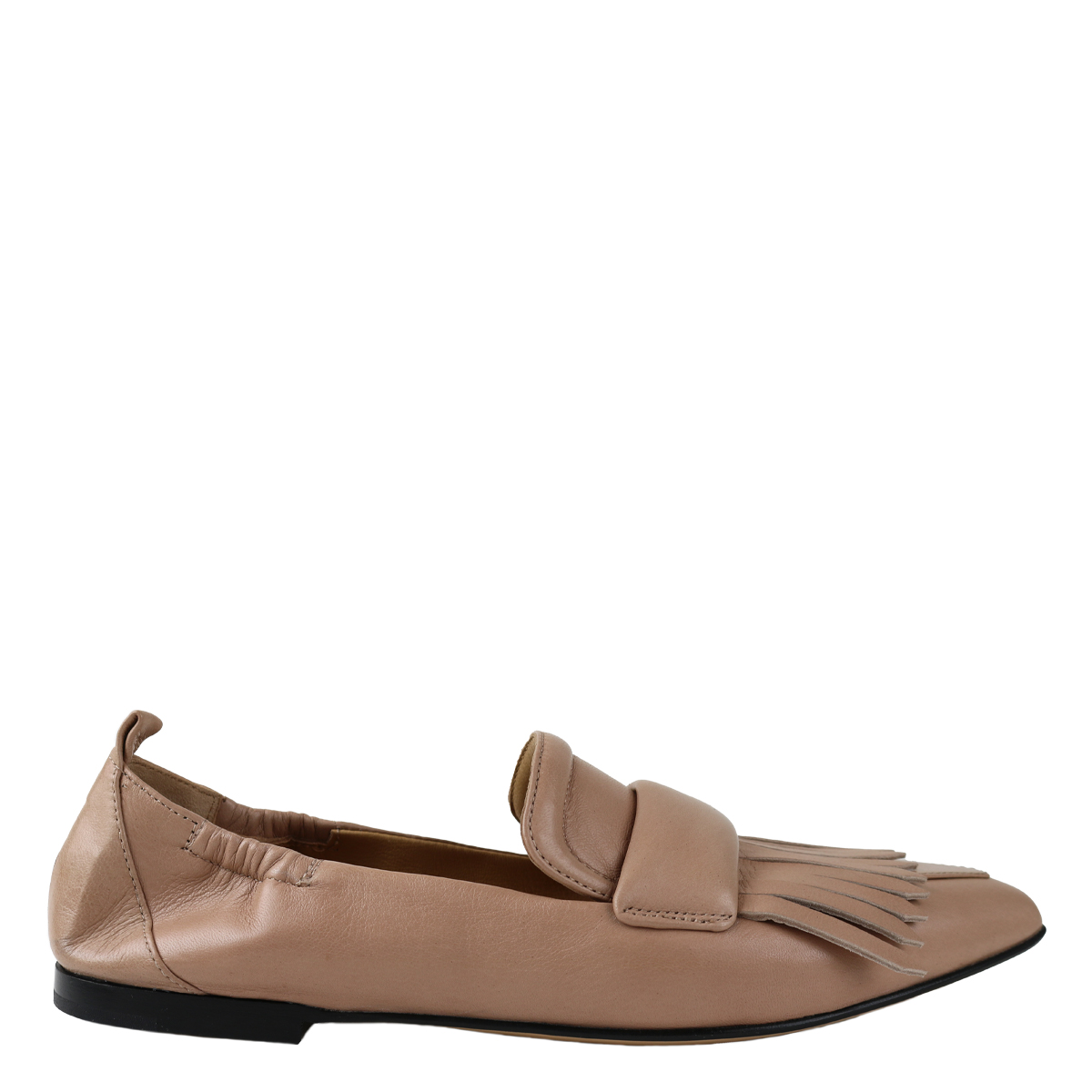 Dames instapper van het merk Pomme D'or. Deze instappers is uitgevoerd in roze leer met franjes aan de voorzijde. De binnenzijde en de zool is uitgevoerd in leer met een rubberen inzet. Maatadvies: bestel uw eigen maat.