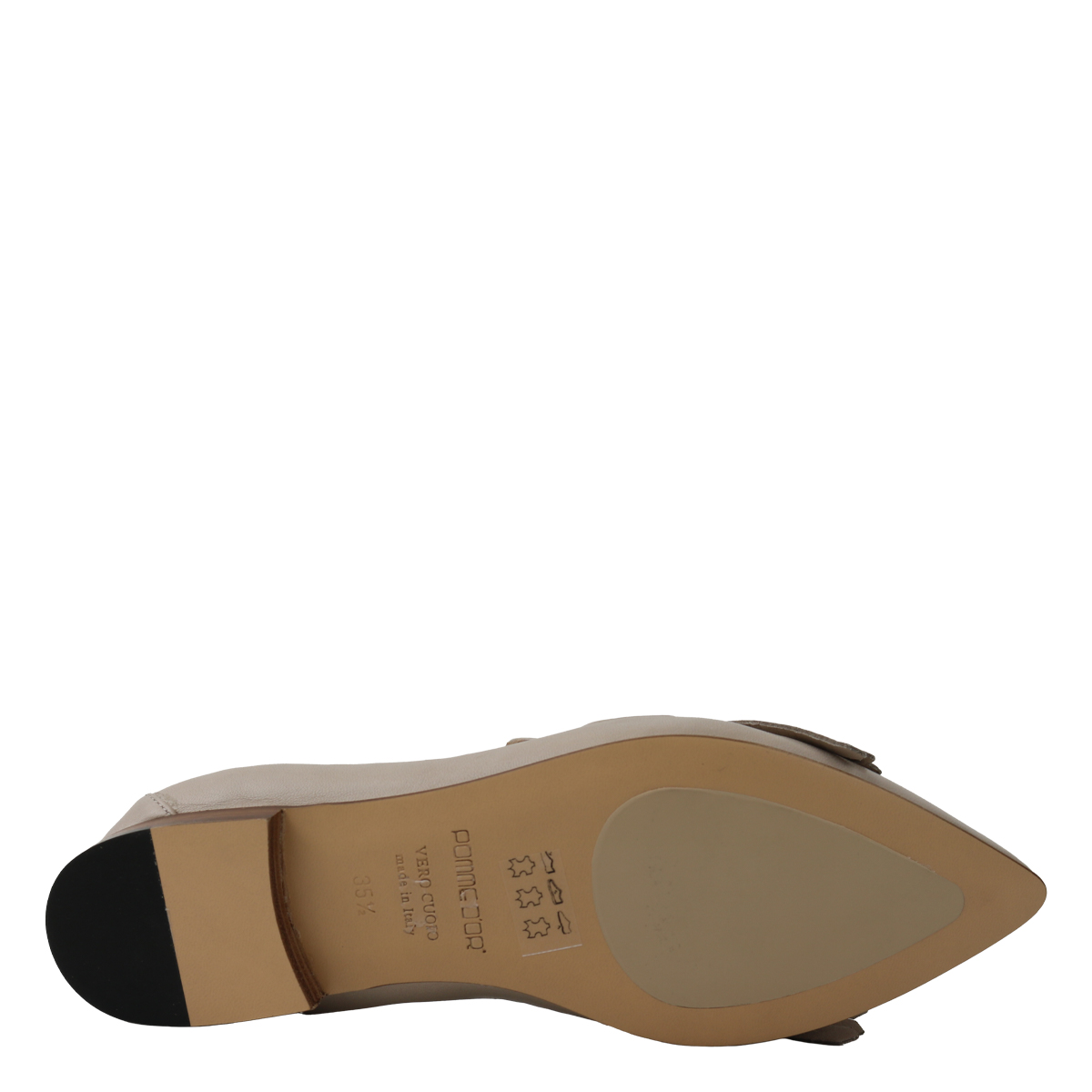 Dames instapper van het merk Pomme D'or. De instapper is uitgevoerd in taupe leer. De binnenzijde en de zool is uitgevoerd in leer met een rubberen inzet. Maatadvies: bestel uw eigen maat.