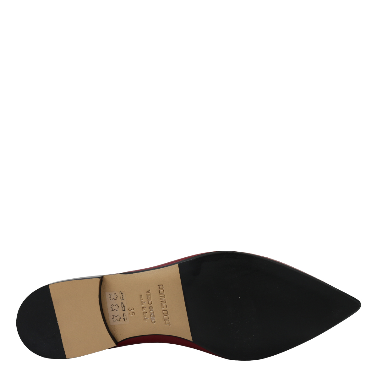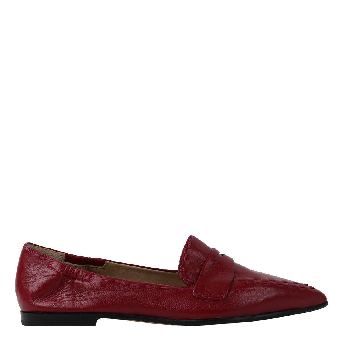 Instapper van het merk Pomme d'Or in rood leer. De binnenzijde en de zool zijn uitgevoerd in leer. De zool heeft een rubberen inzet. Maatadvies: bestel uw eigen maat.