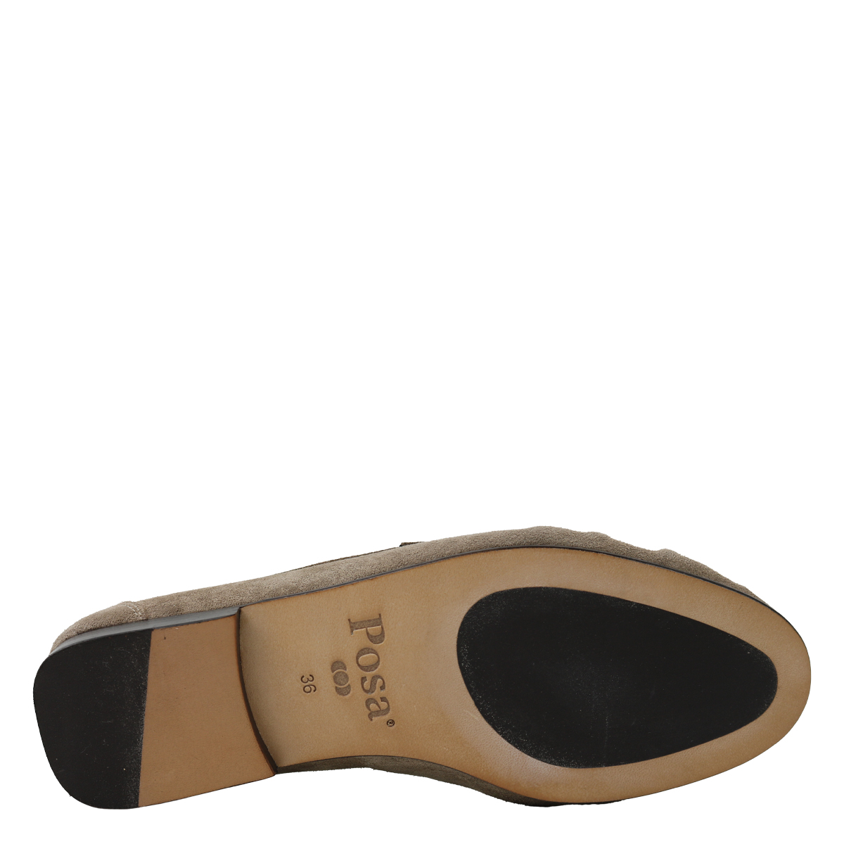 Dames instapper van het merk Posa. De penny loafer is uitgevoerd in lichtbeige suede. De binnenzijde is uitgevoerd in leer en de loopzool is van rubber. Maatadvies: bestel uw eigen maat.