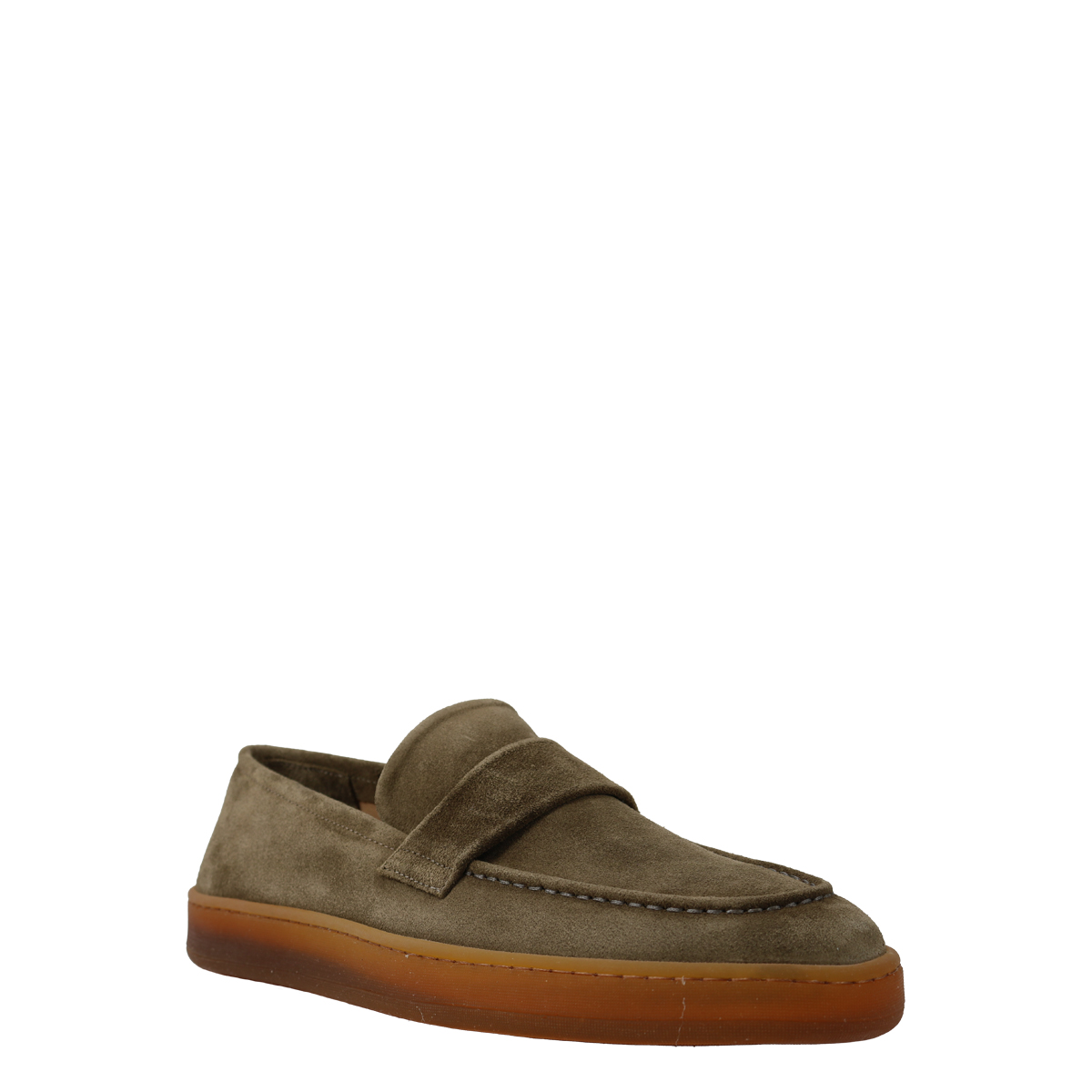 Heren instapper van het merk Rosanno Bisconti. De instapper is uitgevoerd in taupe suede. Het voetbed en de loopzool zijn van leer. Maatadvies: bestel uw eigen maat.
