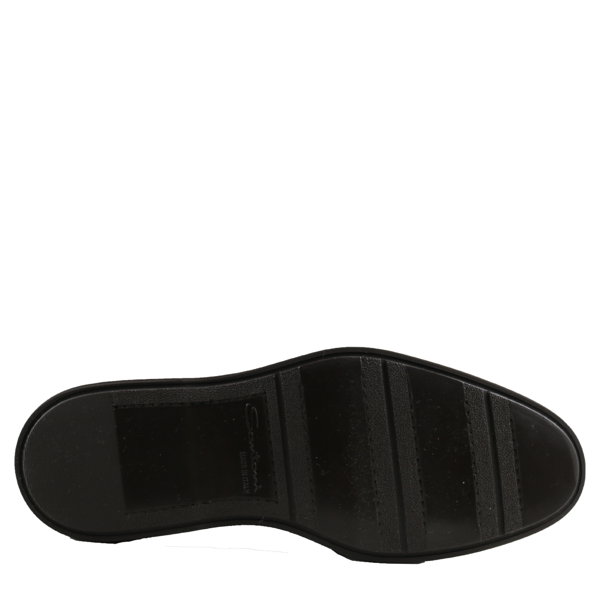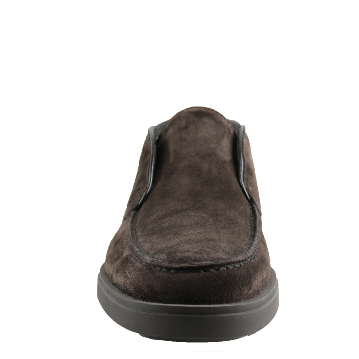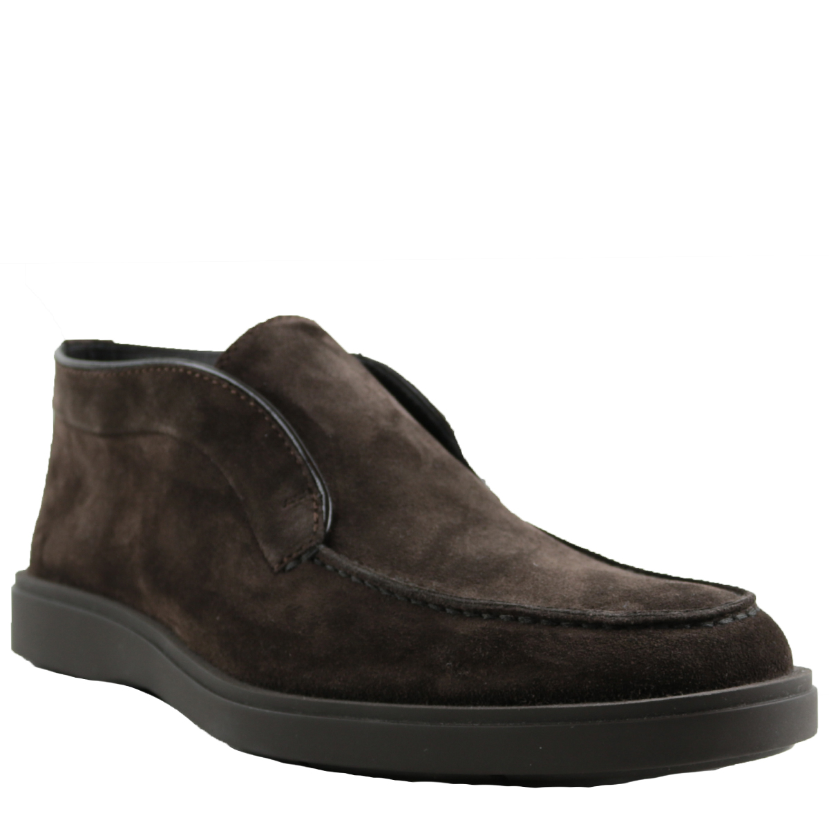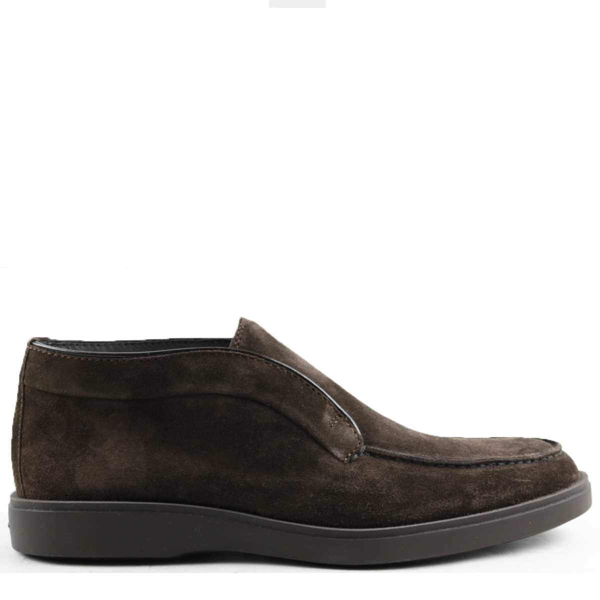 Heren instapper van het Italiaanse merk Santoni. De hoge instapper is uitgevoerd in donkerbruin suède. Santoni is een exclusief merk wat synoniem staat voor luxe, design en handgemaakt vakmanschap. Deze instapper is volledig met leer gevoerd. Een suède contrefort draagt bij aan het loopcomfort, de loopzool is van rubber. Maatadvies: bestel een halve maat kleiner.