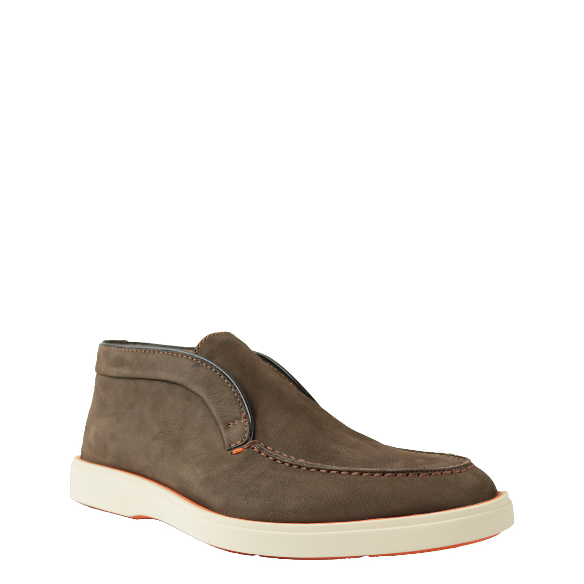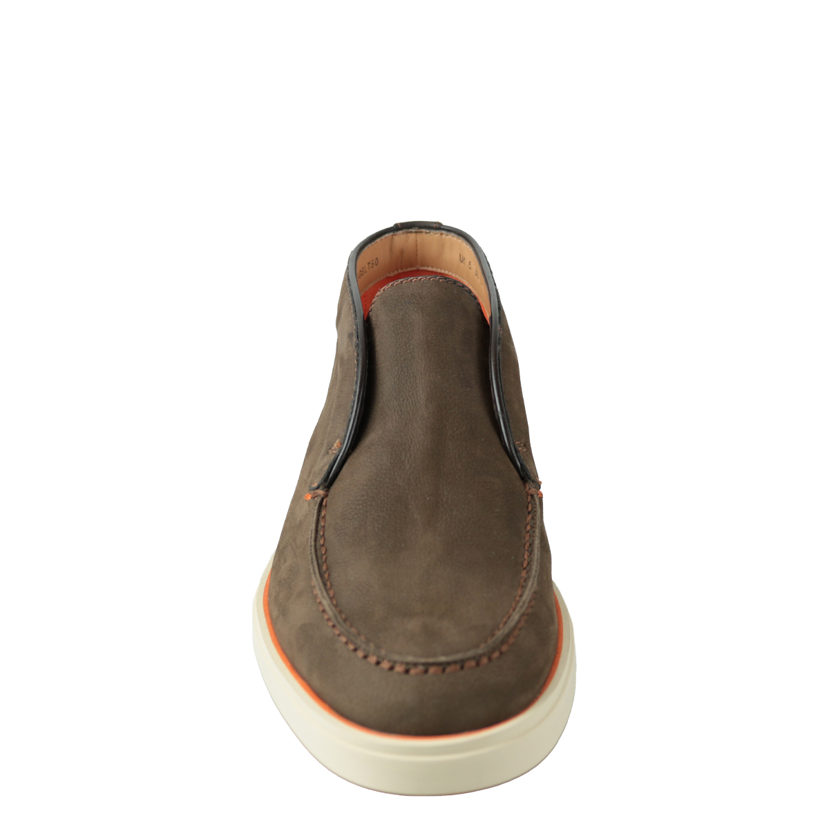 Heren instappers van het Italiaanse merk Santoni. Deze instapper is uitgevoerd in het bruin nubuk. Santoni is een exclusief merk wat synoniem staat voor luxe, design en handgemaakt vakmanschap. Deze schoen is volledig met leer gevoerd en de loopzool is gemaakt van rubber voor extra grip. Maatadvies: bestel een halve maat kleiner.