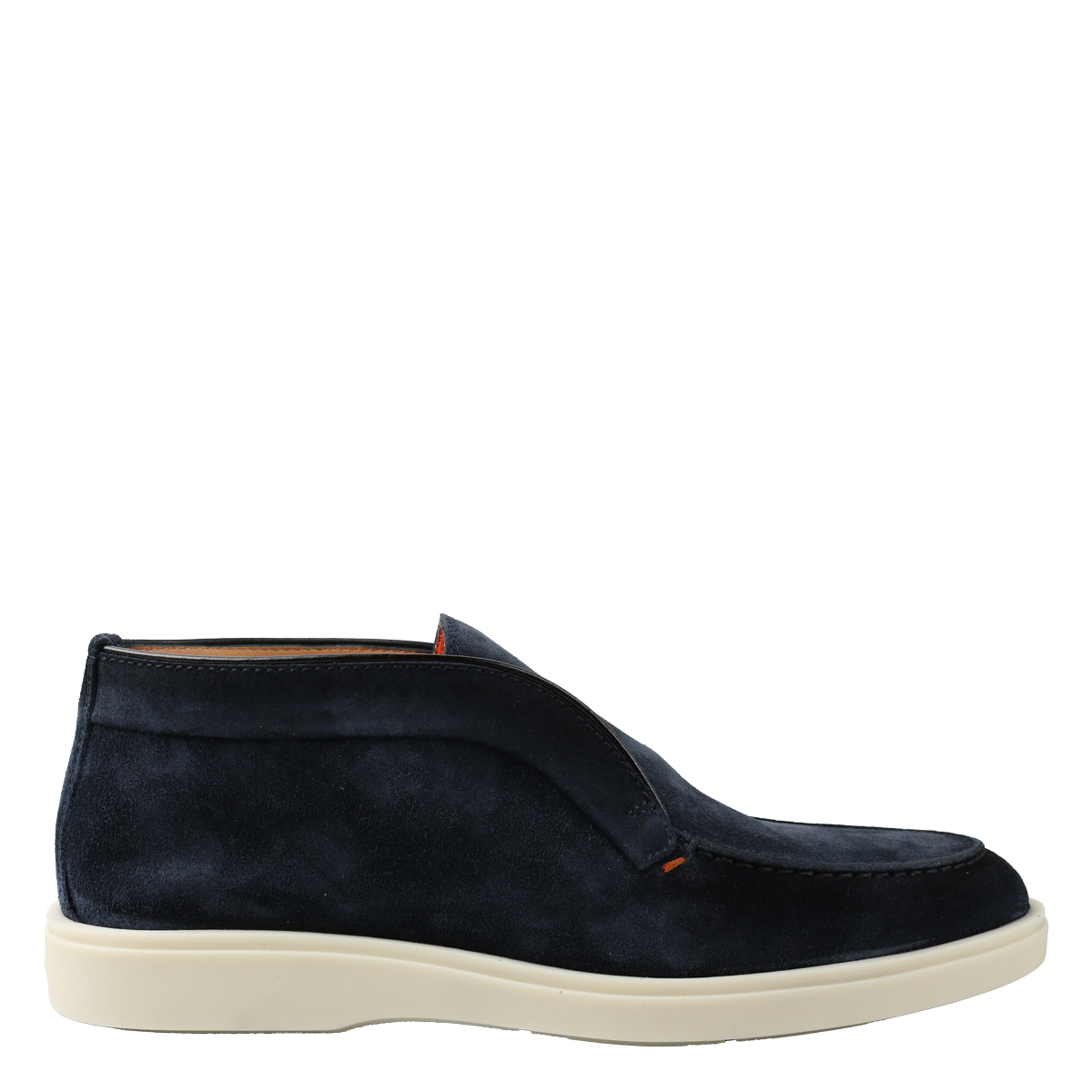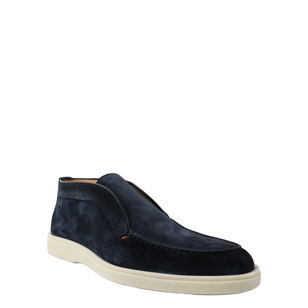 Heren instappers van het Italiaanse merk Santoni. Deze instapper is uitgevoerd in het donkerblauw suede. Santoni is een exclusief merk wat synoniem staat voor luxe, design en handgemaakt vakmanschap. Deze schoen is volledig met leer gevoerd en de loopzool is gemaakt van rubber voor extra grip. Maatadvies: bestel een halve maat kleiner.