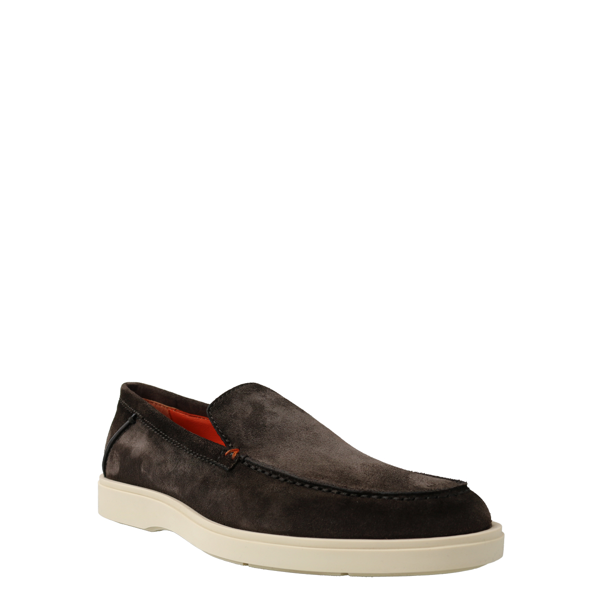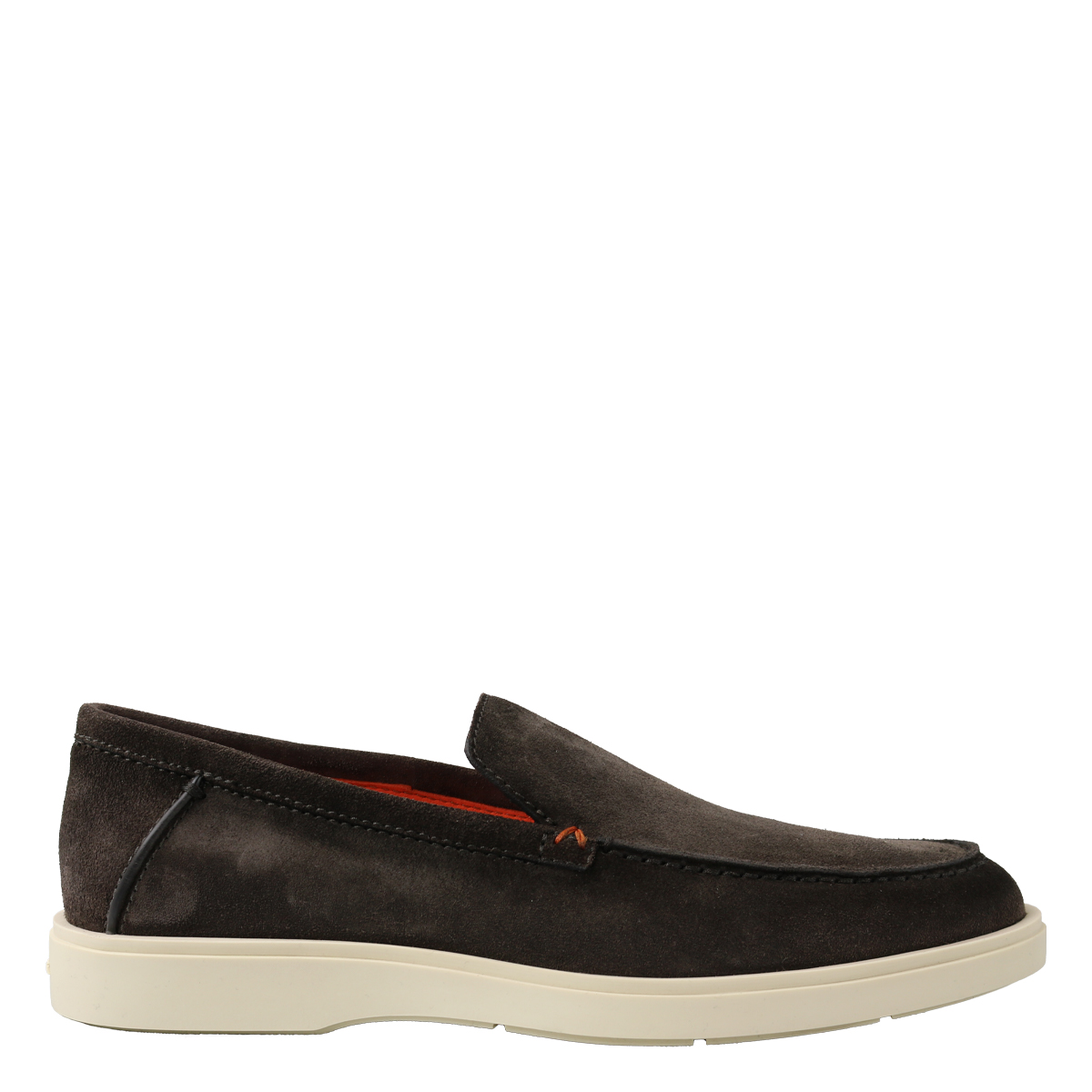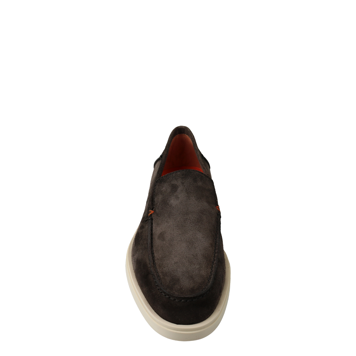 Heren instappers van het Italiaanse merk Santoni. Deze instapper is uitgevoerd in het donkerbruin suede. Santoni is een exclusief merk wat synoniem staat voor luxe, design en handgemaakt vakmanschap. Deze schoen is volledig met leer gevoerd en de loopzool is gemaakt van rubber voor extra grip. Maatadvies: bestel een halve maat kleiner.