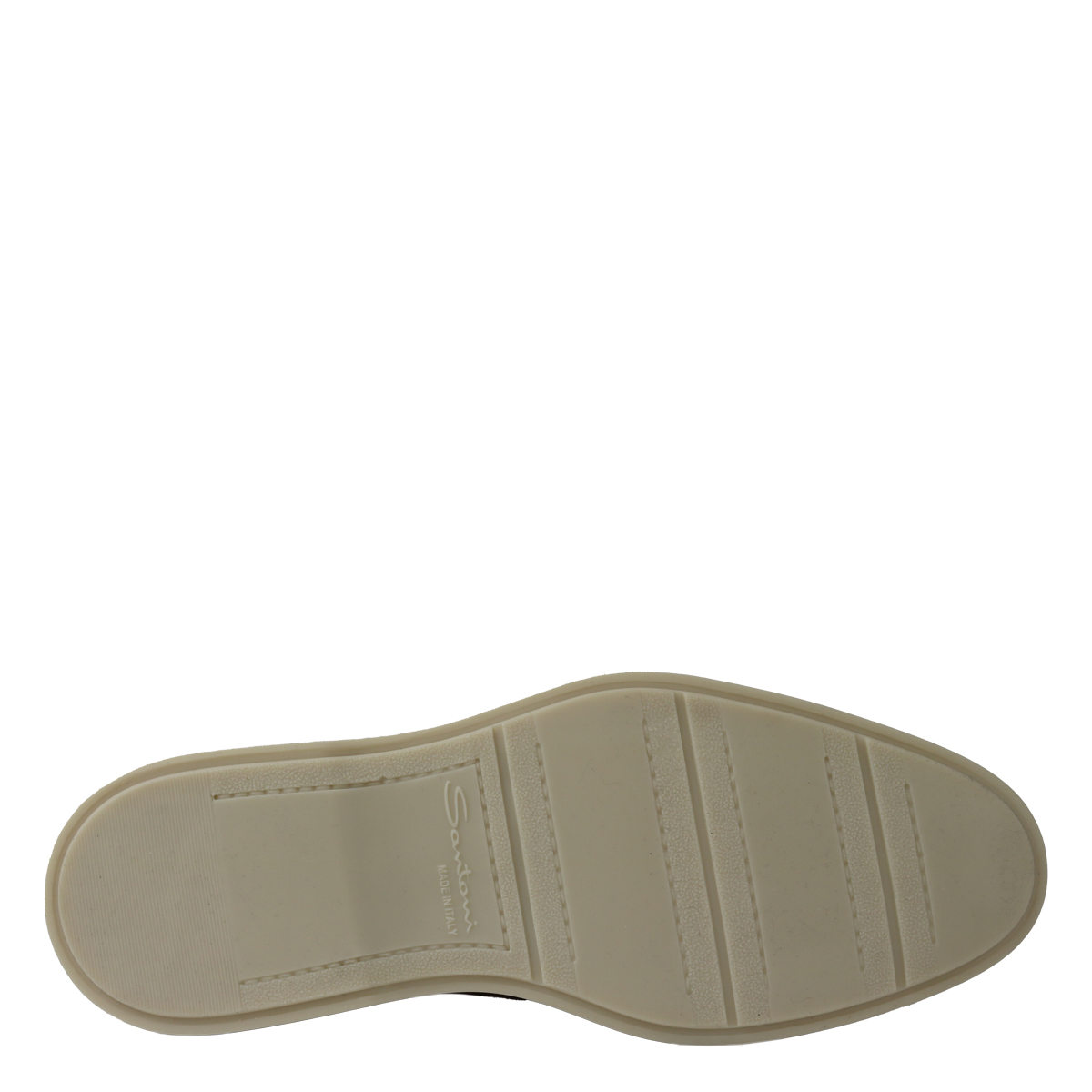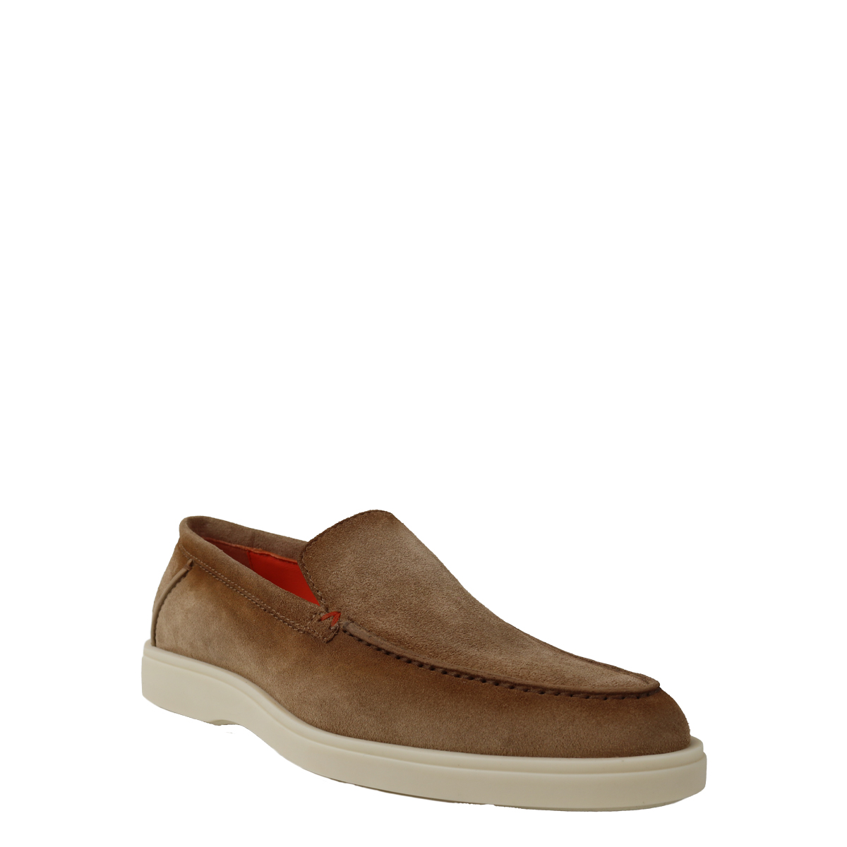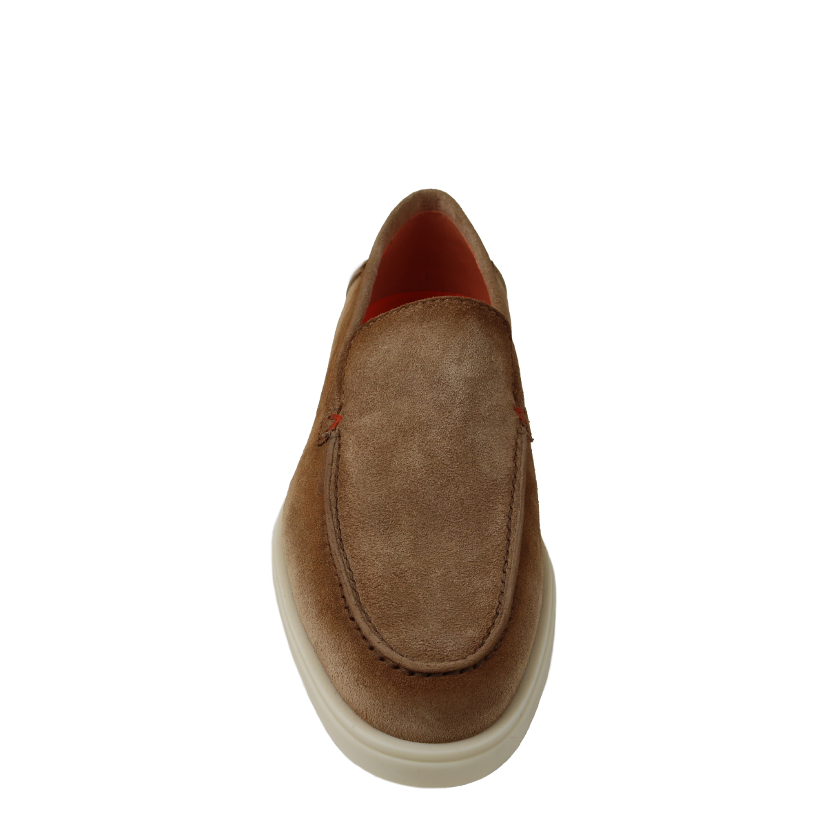 Heren instappers van het Italiaanse merk Santoni. Deze instapper is uitgevoerd in het lichtbruin suede. Santoni is een exclusief merk wat synoniem staat voor luxe, design en handgemaakt vakmanschap. Deze schoen is volledig met leer gevoerd en de loopzool is gemaakt van rubber voor extra grip. Maatadvies: bestel een halve maat kleiner.
