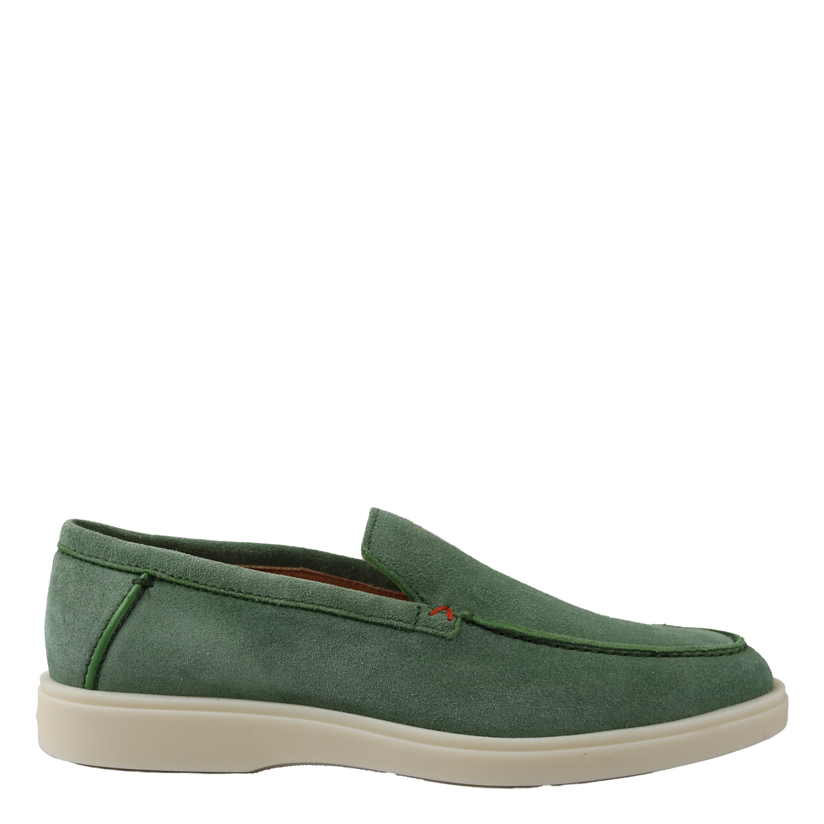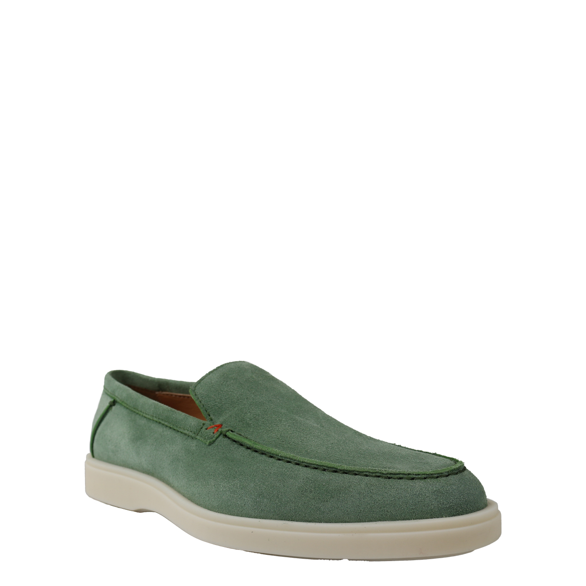 Heren instappers van het Italiaanse merk Santoni. Deze instapper is uitgevoerd in het groen suede. Santoni is een exclusief merk wat synoniem staat voor luxe, design en handgemaakt vakmanschap. Deze schoen is volledig met leer gevoerd en de loopzool is gemaakt van rubber voor extra grip. Maatadvies: bestel een halve maat kleiner.