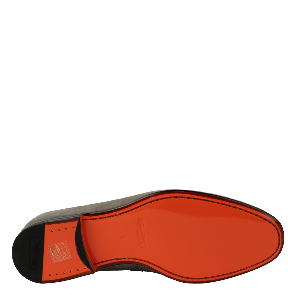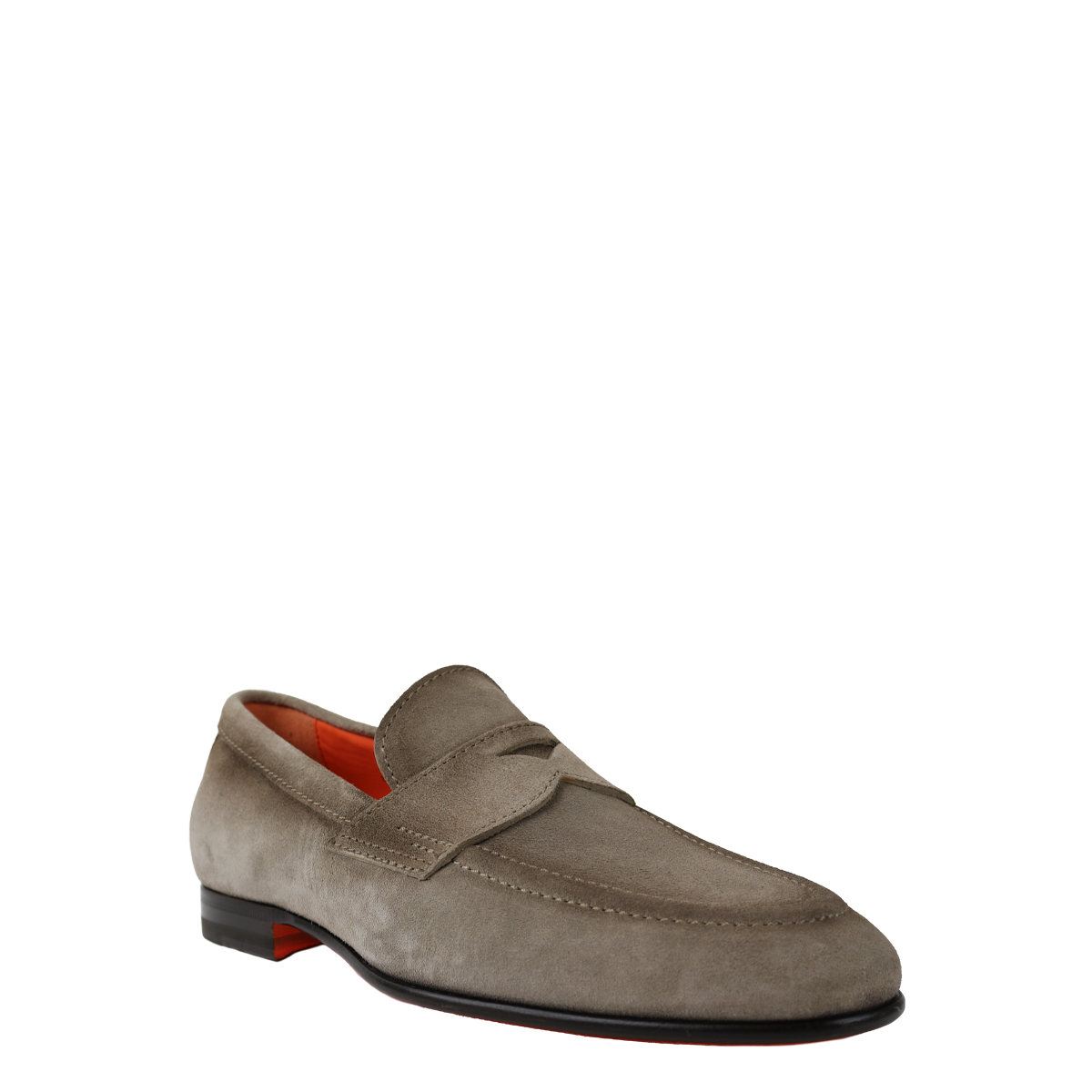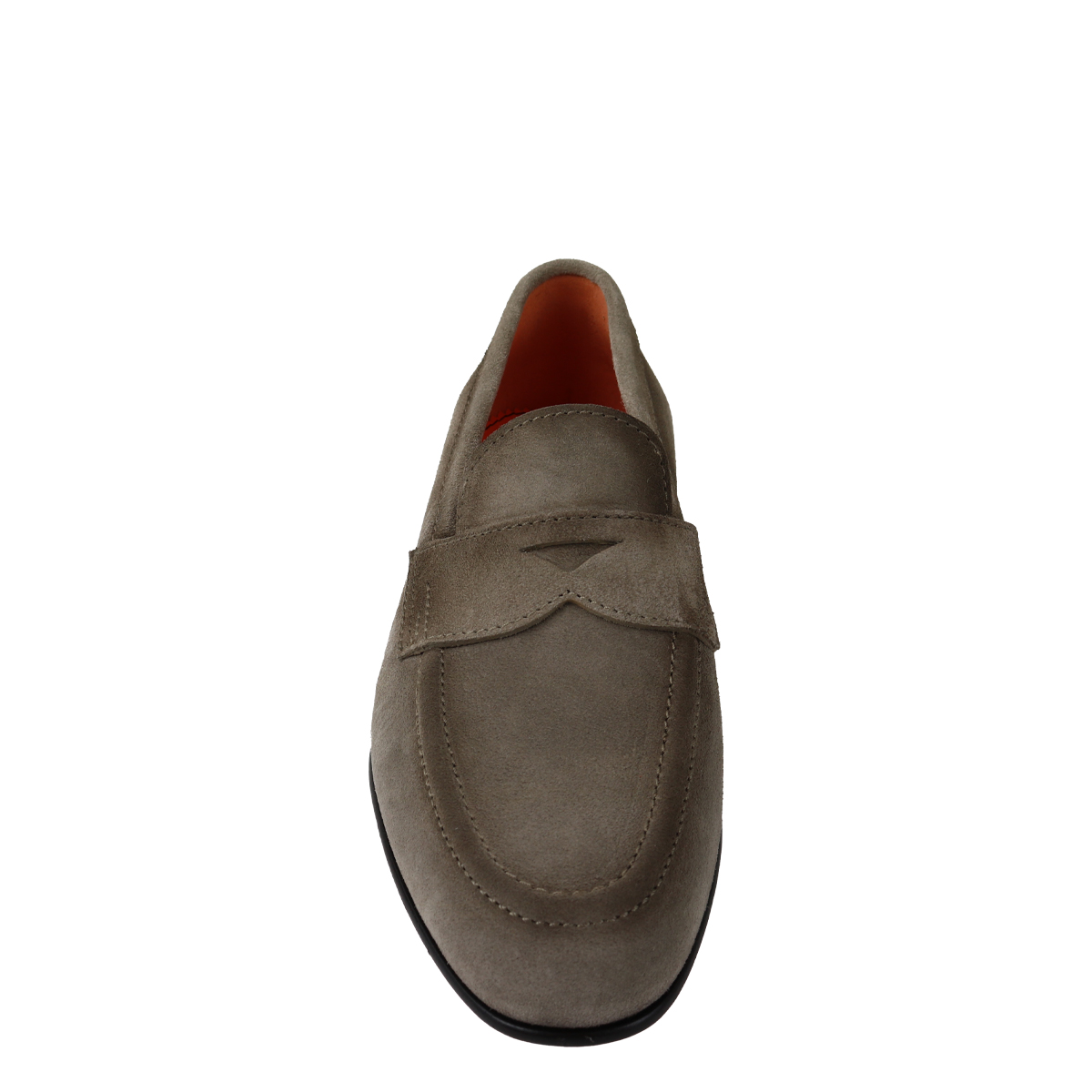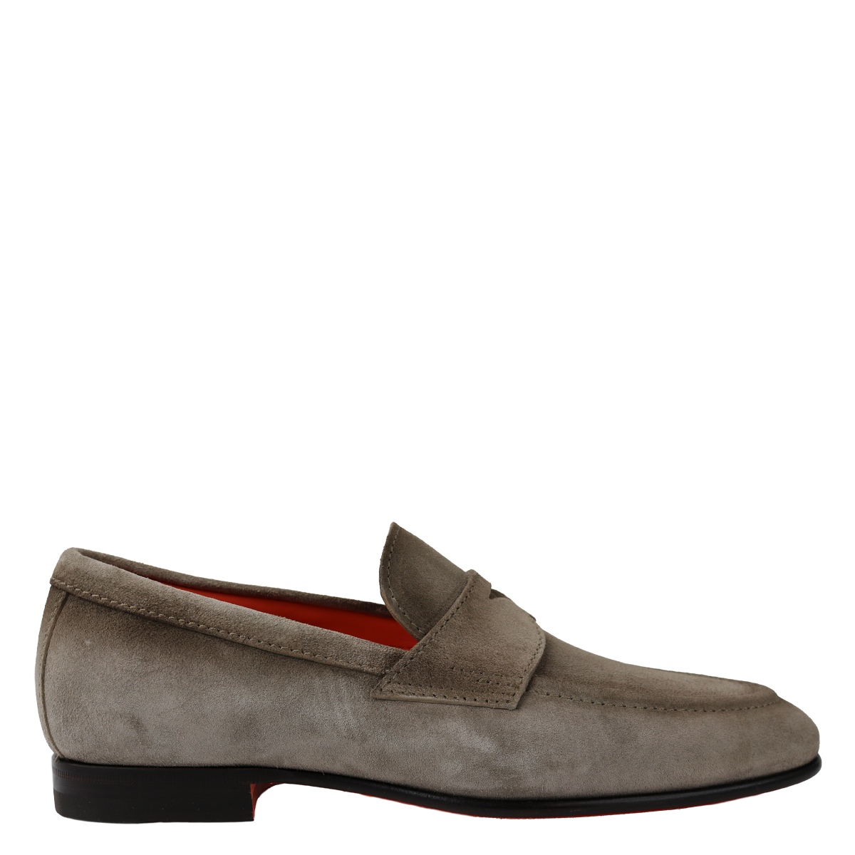 Heren instapper van het Italiaanse merk Santoni. Deze instapper is uitgevoerd in taupe gewassen suede. Santoni is een exclusief merk wat synoniem staat voor luxe, design en handgemaakt vakmanschap. Deze instapper is volledig met leer gevoerd. De loopzool is gemaakt van leer. Maatadvies: bestel een halve maat kleiner.
