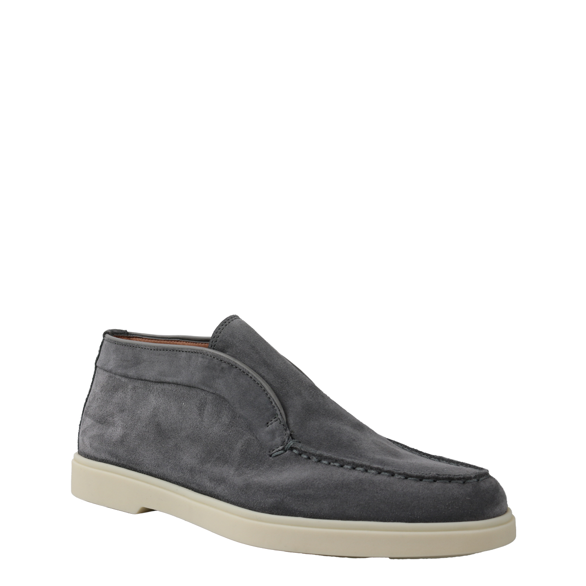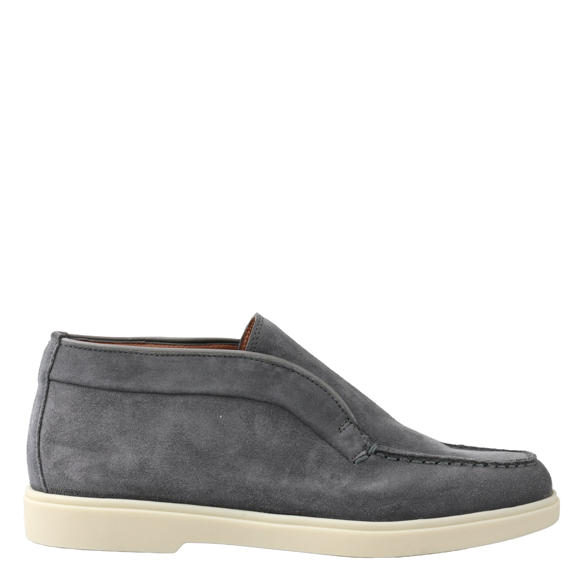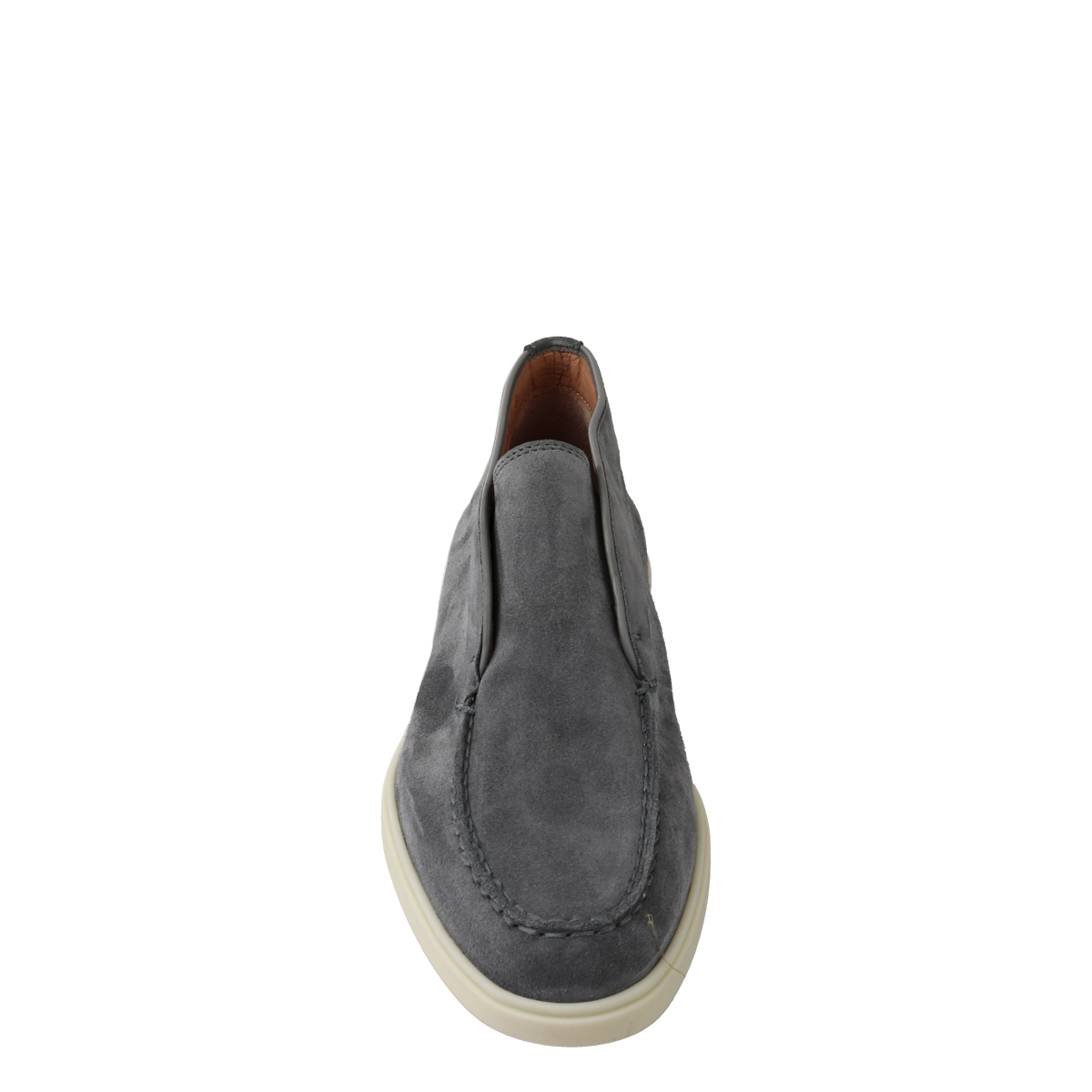 Dames instapper van het merk Santoni. Deze instapper is uitgevoerd in grijs suede. Santoni is een exclusief merk wat synoniem staat voor luxe, design en handgemaakt vakmanschap. Het voetbed is van leer en de loopzool is van leer. Maatadvies: bestel een halve maat kleiner.