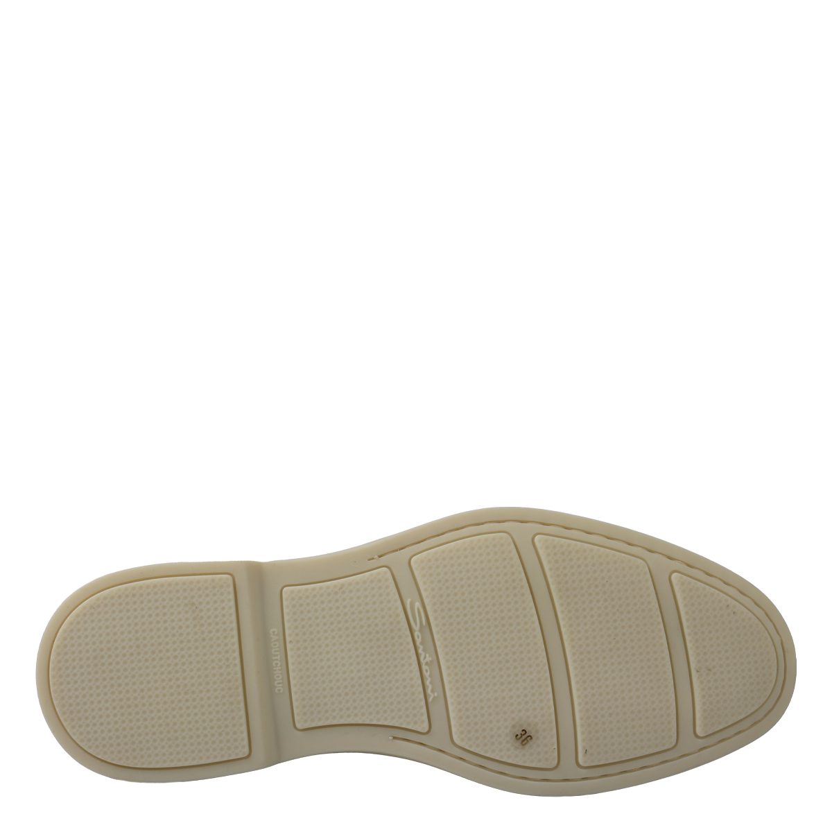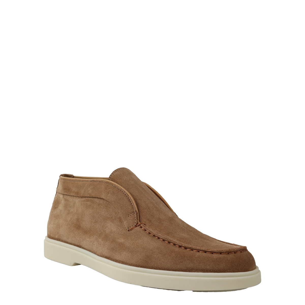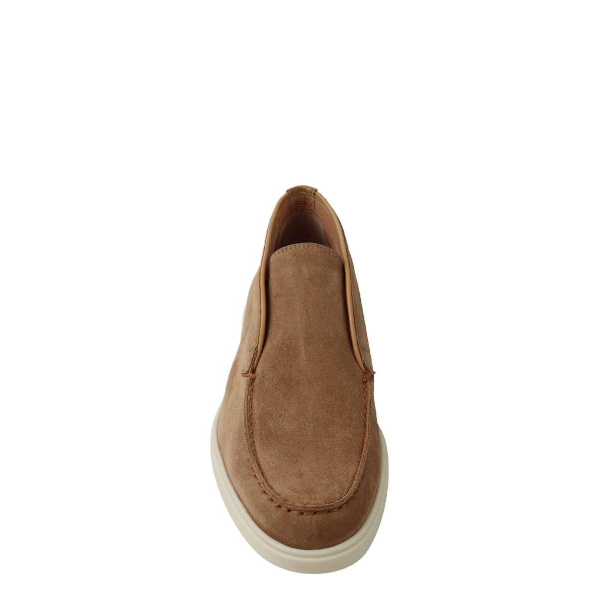 Dames instapper van het merk Santoni. Deze instapper is uitgevoerd in cognac suede. Santoni is een exclusief merk wat synoniem staat voor luxe, design en handgemaakt vakmanschap. Het voetbed is van leer en de loopzool is van leer. Maatadvies: bestel een halve maat kleiner.
