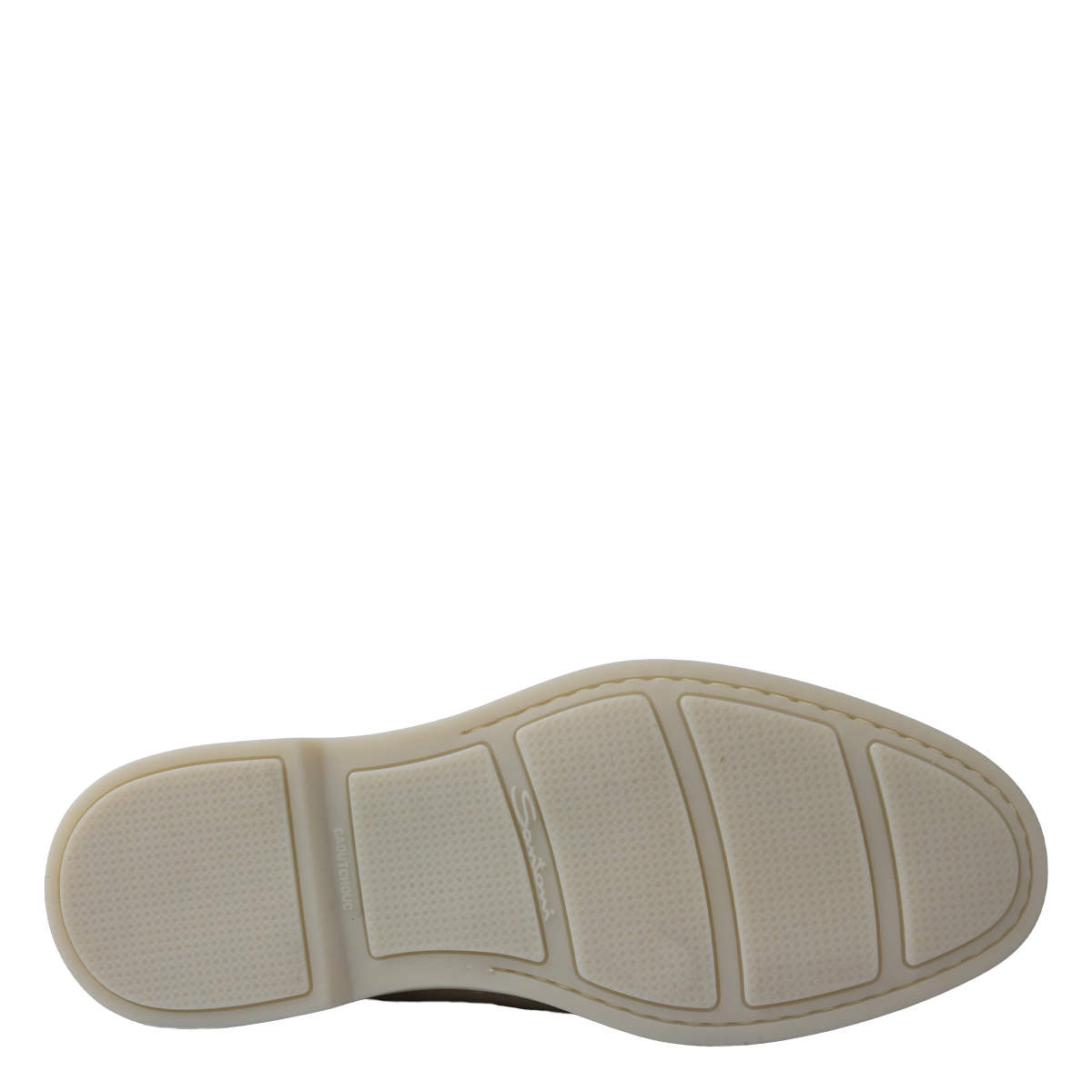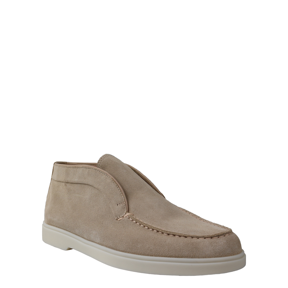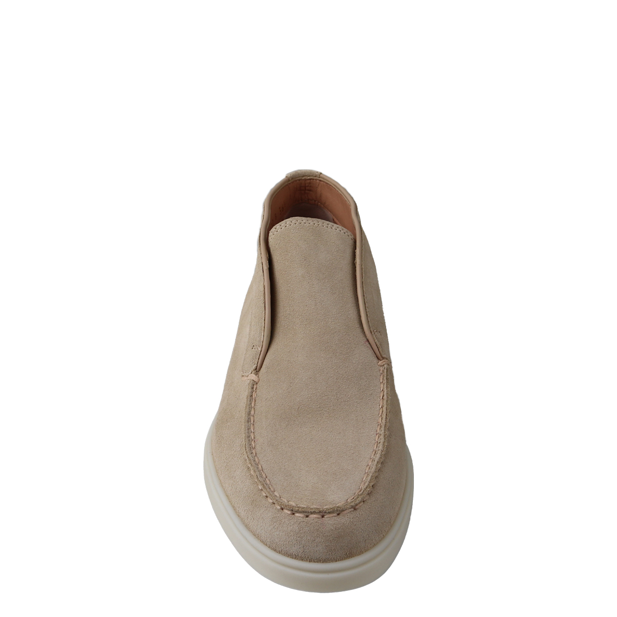 Dames instapper van het merk Santoni. De instapper is uitgevoerd in lichtbeige suede. De binnenzijde is uitgevoerd in leer en de loopzool is van rubber. Maatadvies: bestel een halve maat kleiner.