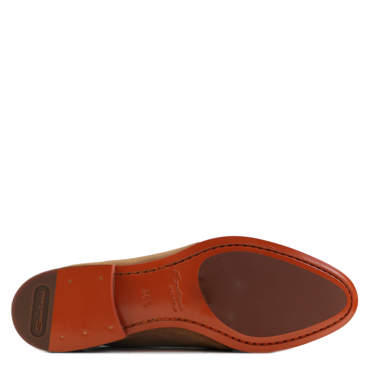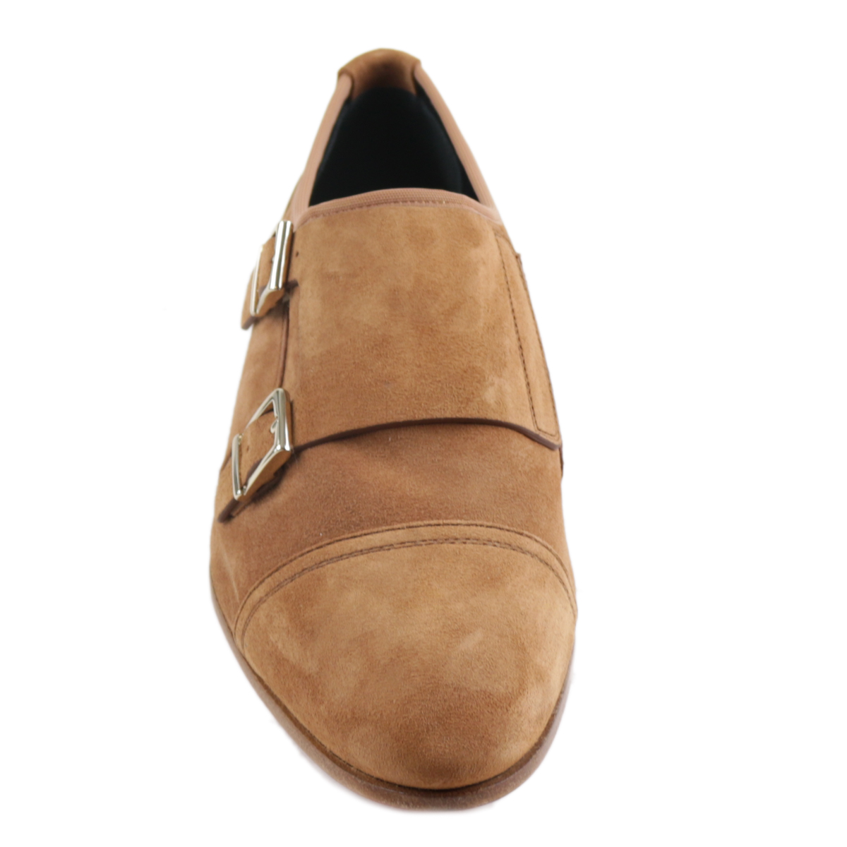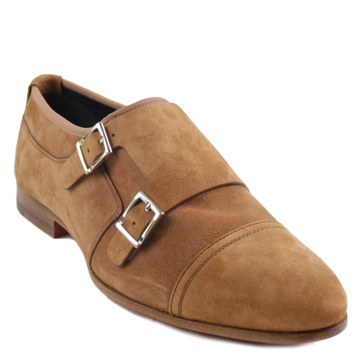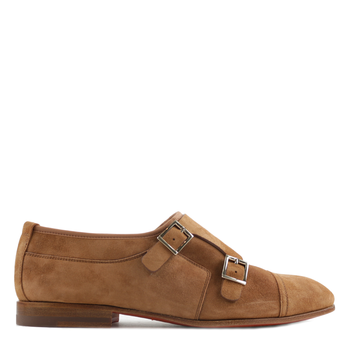 Dames instapper/gespschoen van het merk Santoni, uitgevoerd in cognac suède. Deze exclusieve Santoni damesschoenen zijn uitgevoerd in kwaliteitssuède met een omslag met zilveren gespen. De binnenzijde en het voetbed zijn geheel van leer, het suède contrefort zorgt voor extra comfort. Daarnaast heeft deze Santoni gespschoen een leren zool met rubberen inzet. Maatadvies: bestel een halve maat kleiner.