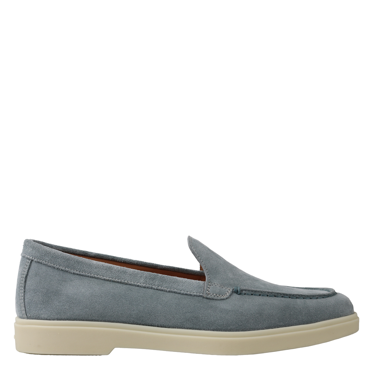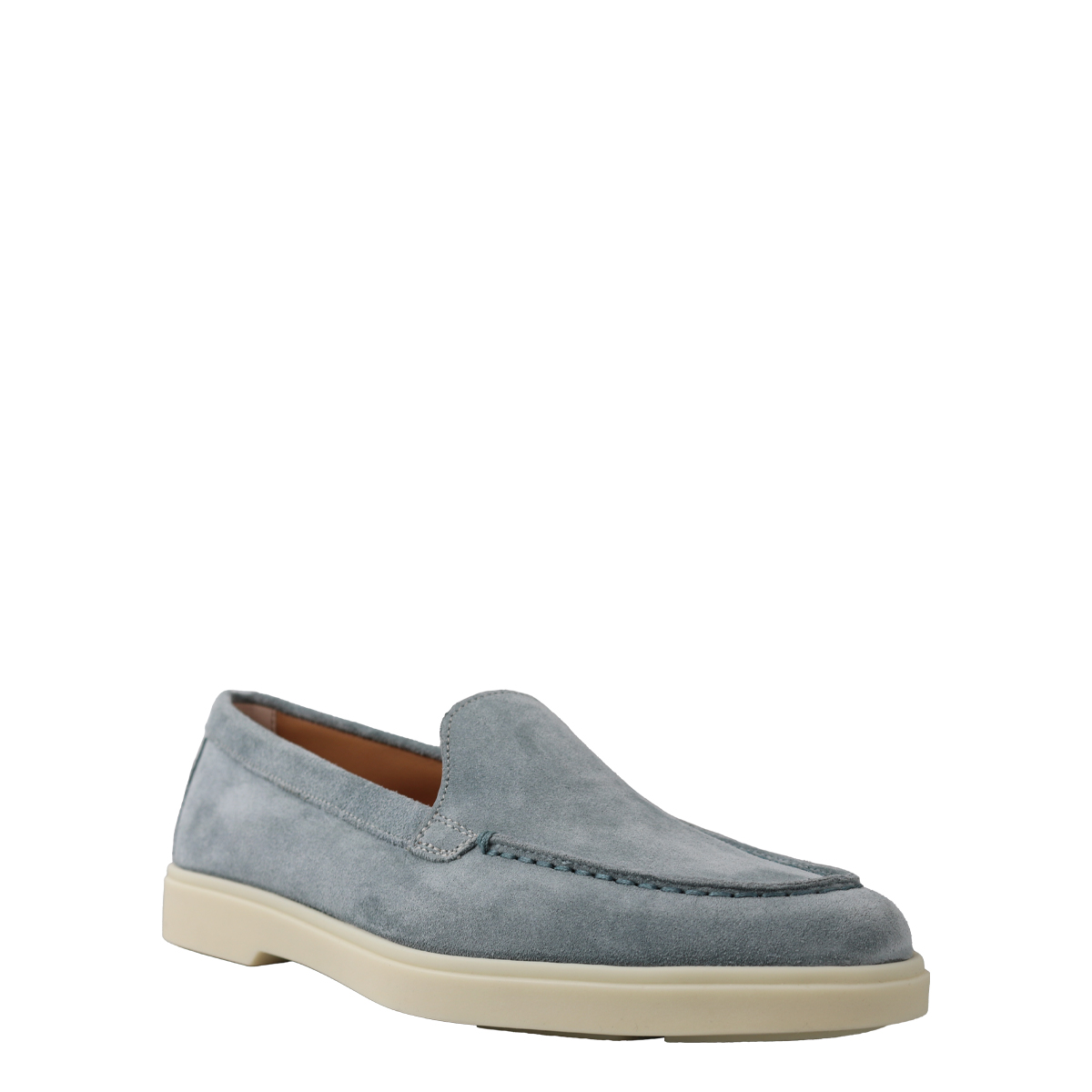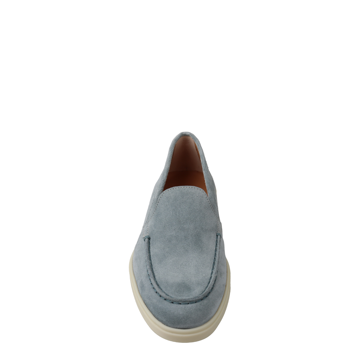 Dames instapper van het merk Santoni. De instapper is uitgevoerd in lichtblauw suede. De binnenzijde is uitgevoerd in leer en de loopzool is van rubber. Maatadvies: bestel een halve maat kleiner.