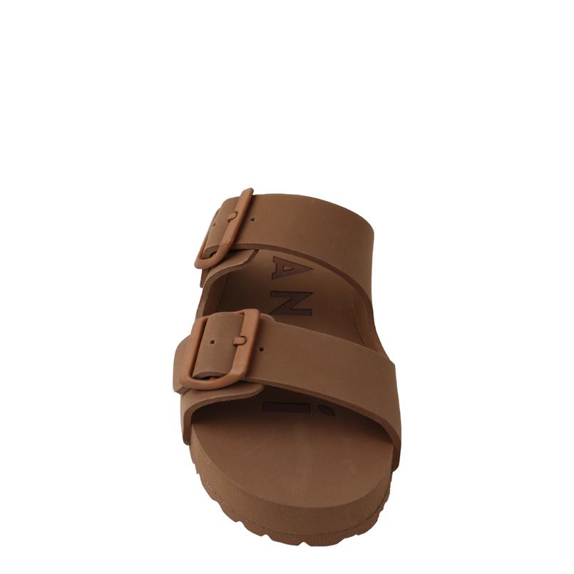 Dames slipper van Manebi uitgevoerd in cognac rubber. Het model is voorzien van twee gesp bandjes. De loopzool is van rubber voor een stevige grip. Maatadvies: bestel uw eigen maat.